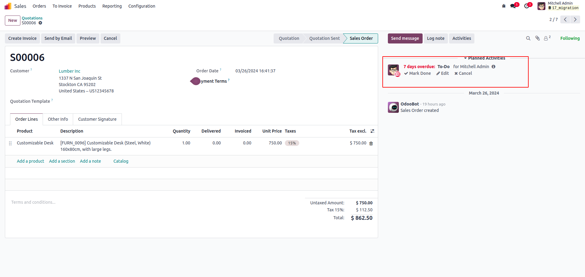 The scheduled date and completion date of an activity are both showcased in the chatter feed.