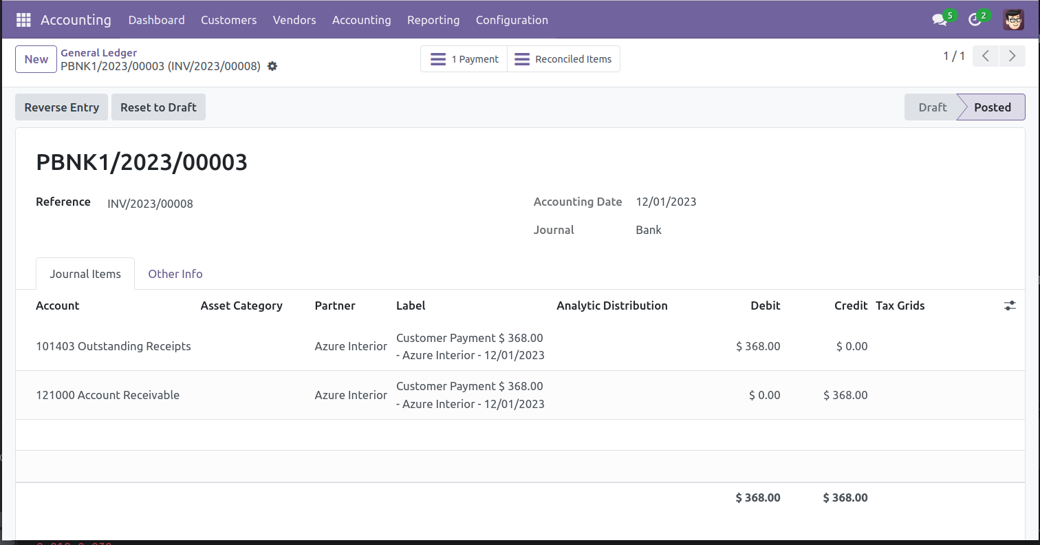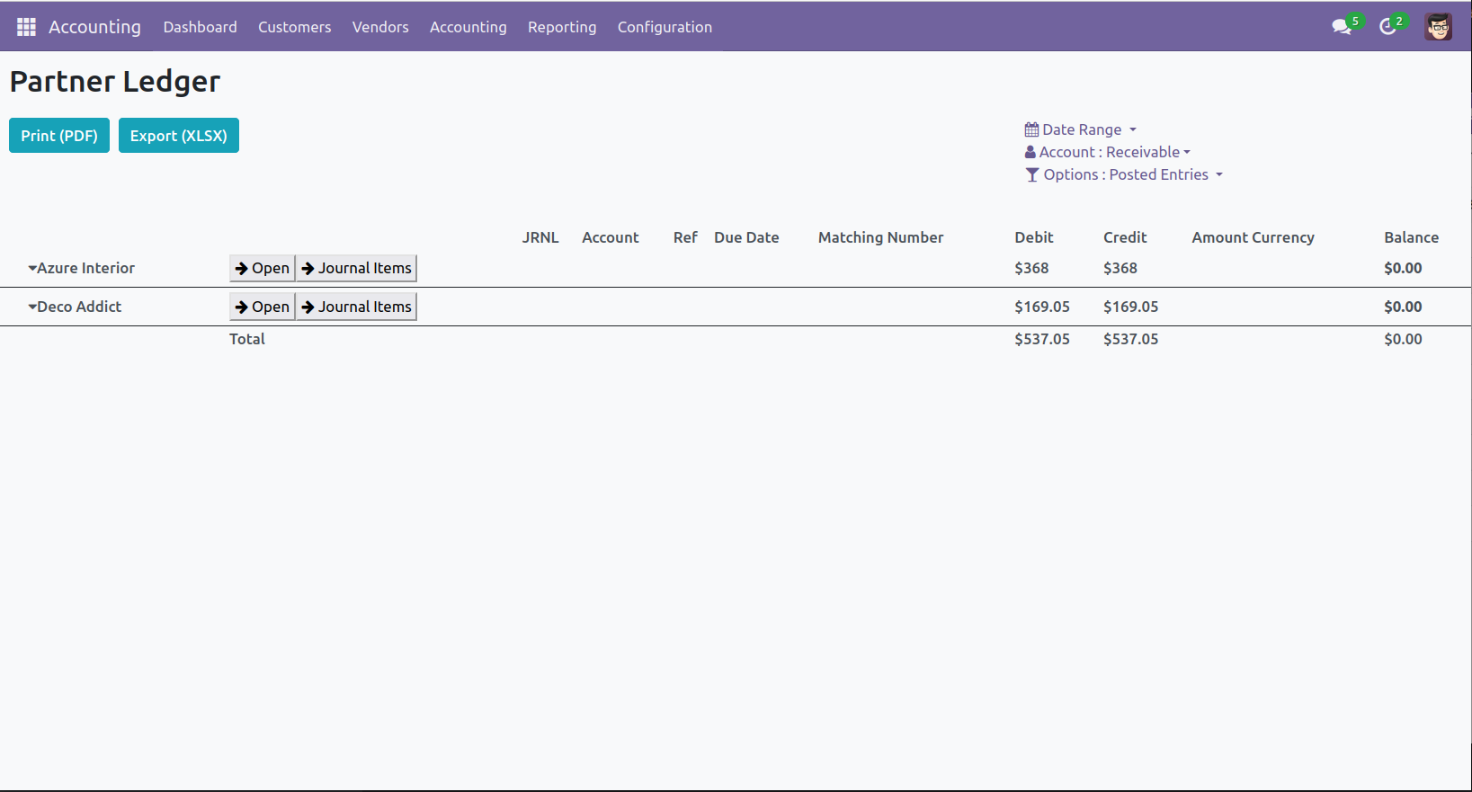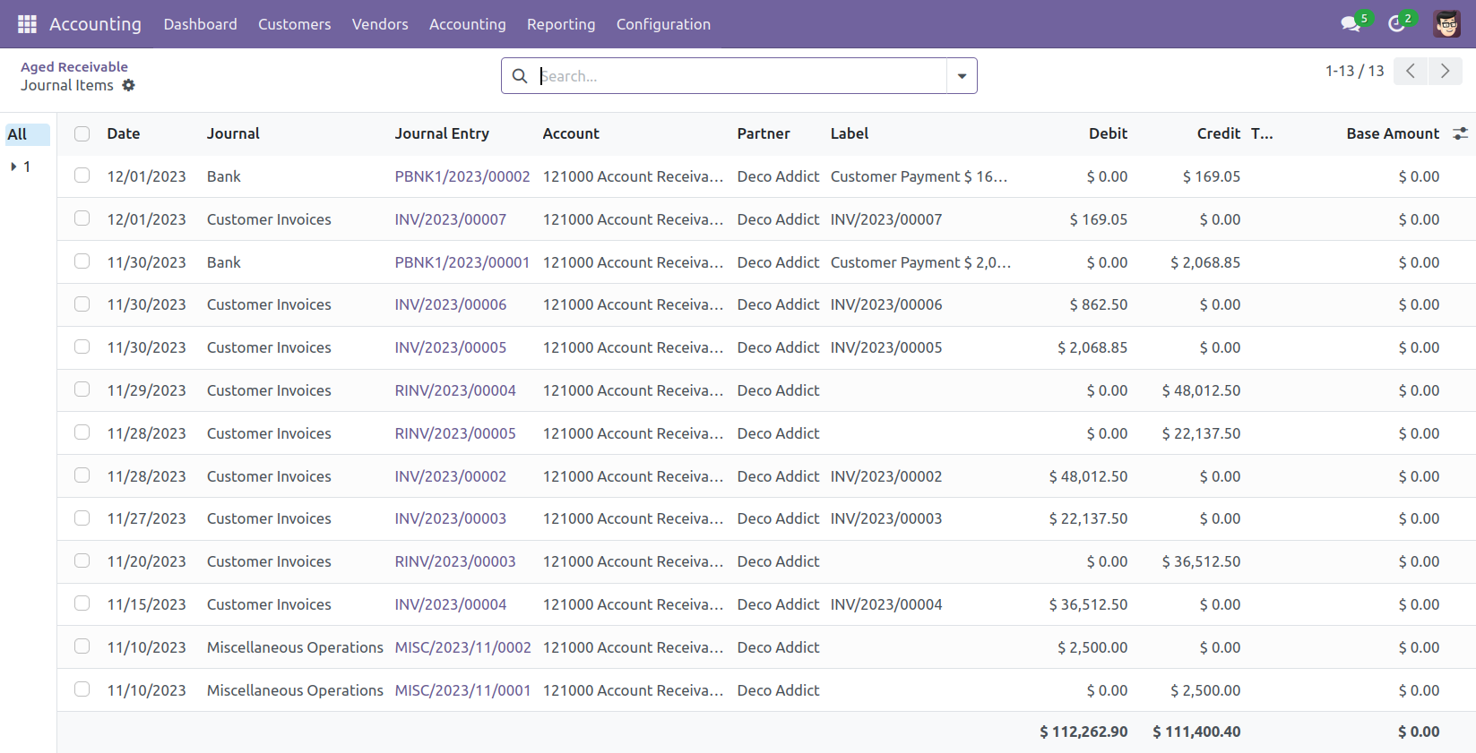 The user can drill down from the main report to the journal entries. You can open the form view of each journal entry and view the complete details here.