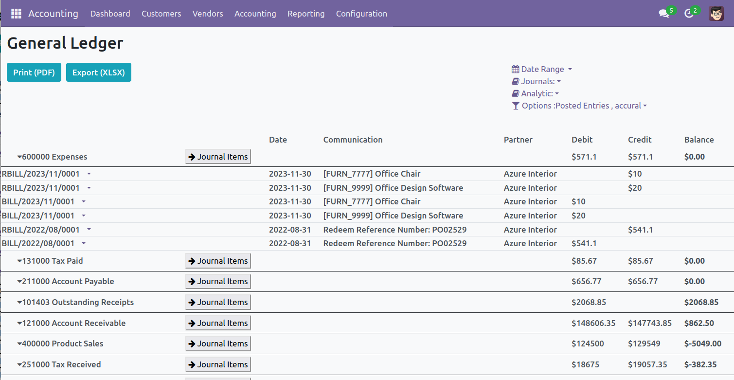 Dynamic Reports for Trial Balance, Profit and Loss, General Ledger, Tax Report, etc.