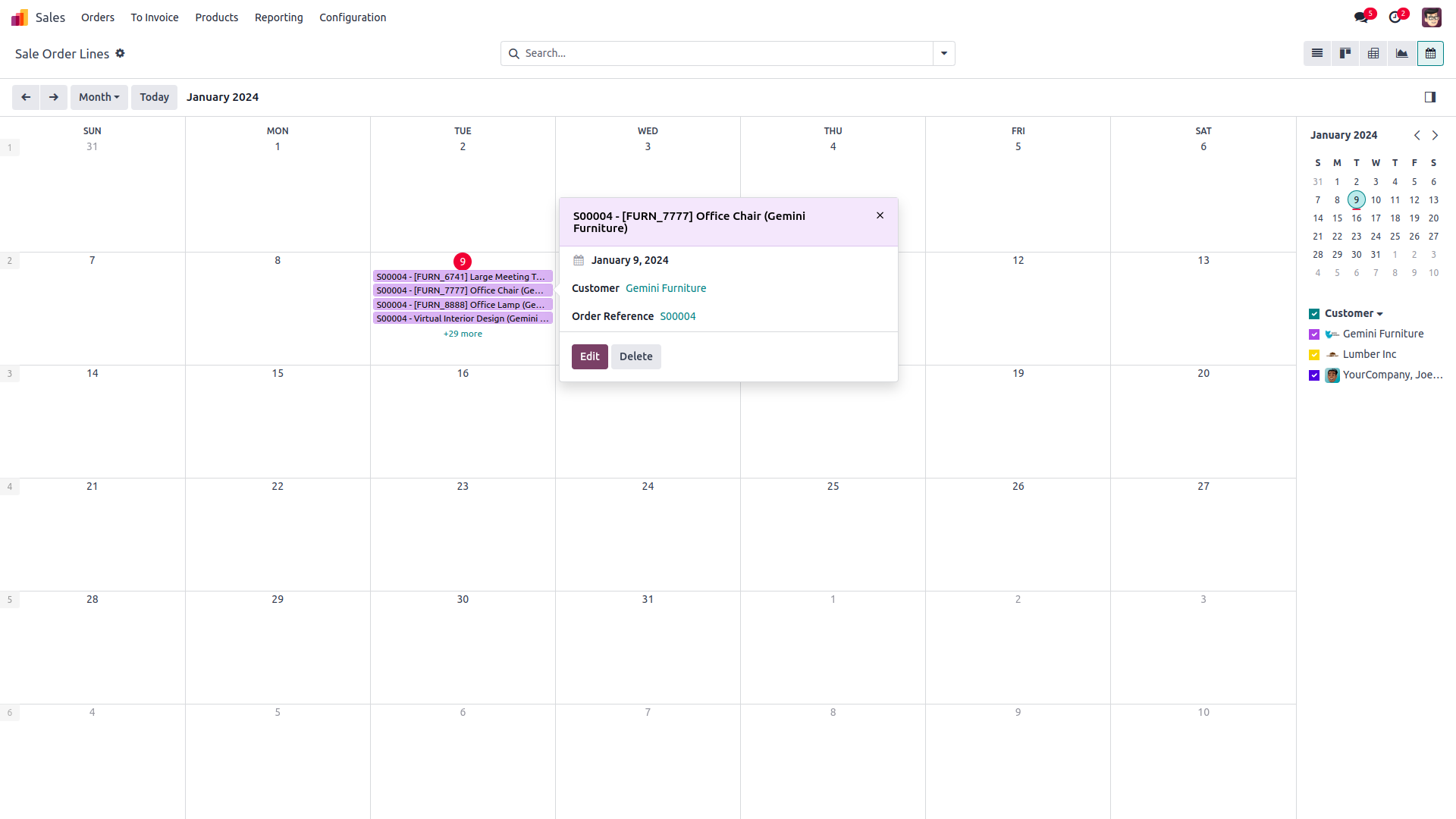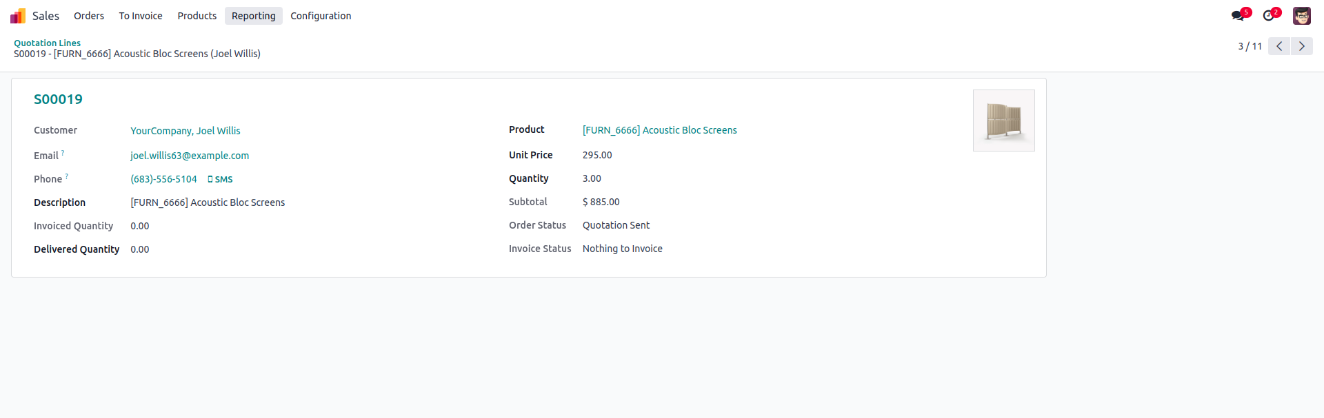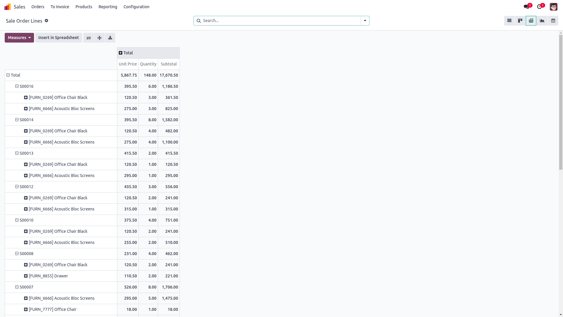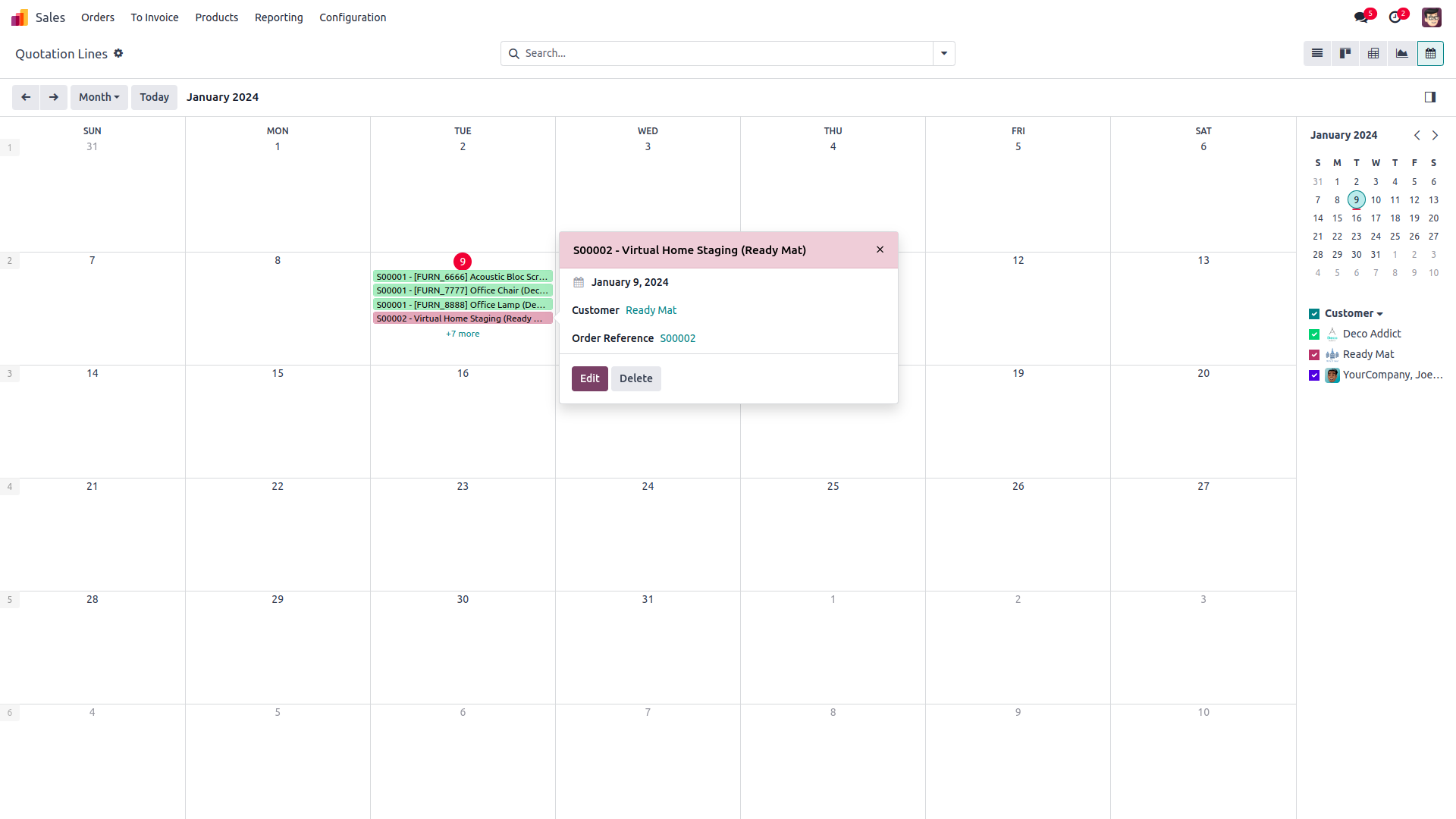 Sale order/quotation details can be viewed in different views like, list view,form view, kanban view, search view, pivot view, graph view and calendar view.