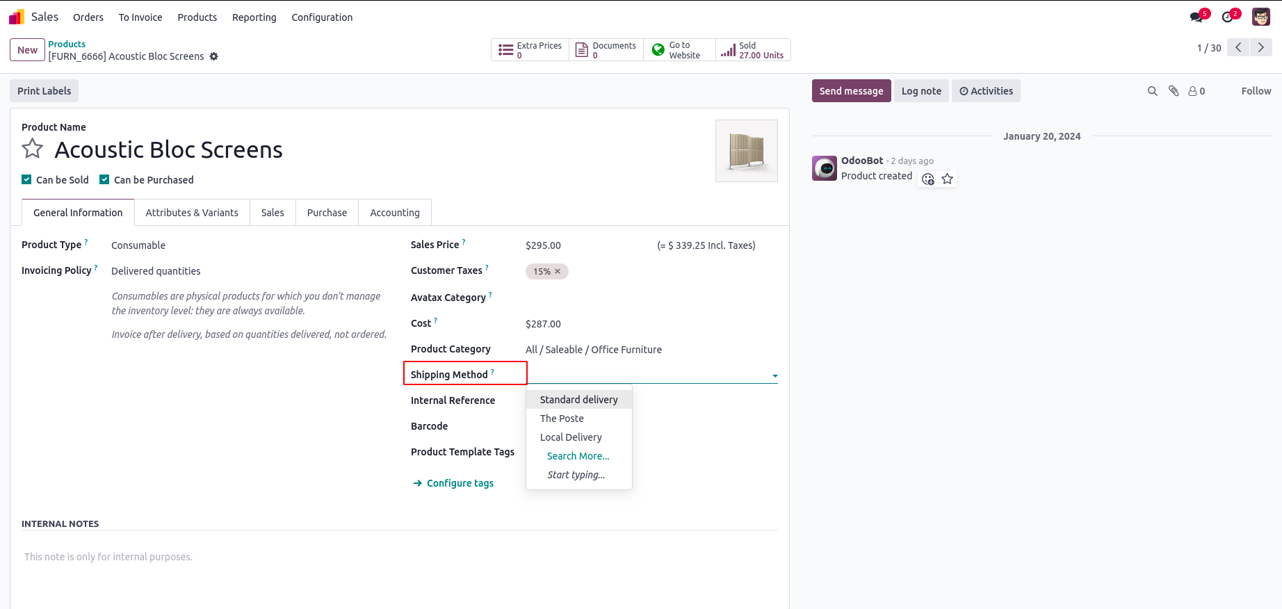 This Module Allows Users to Manage Product Wise Shipping Methods On Sale Order.