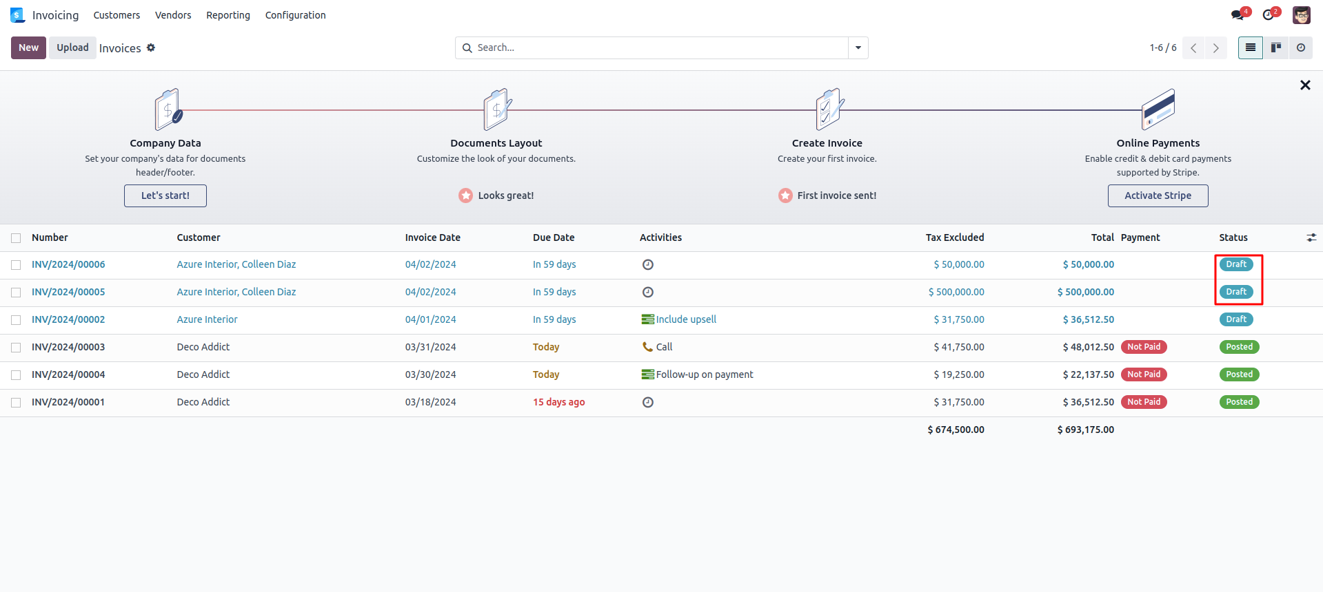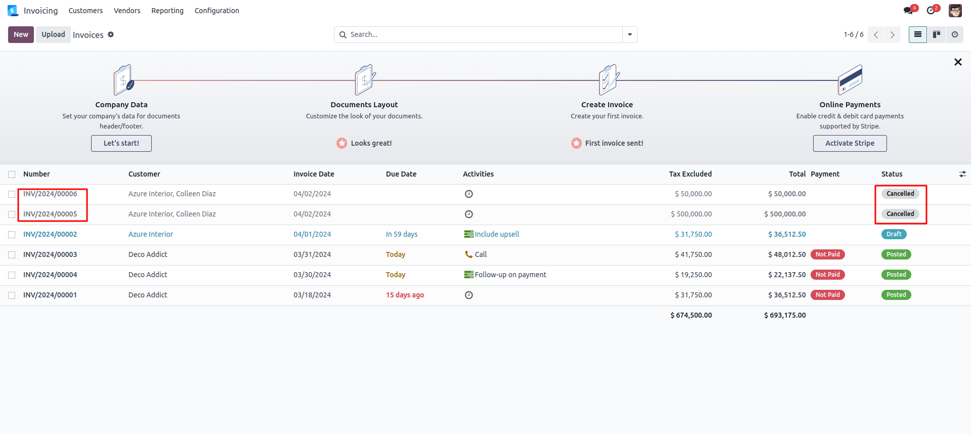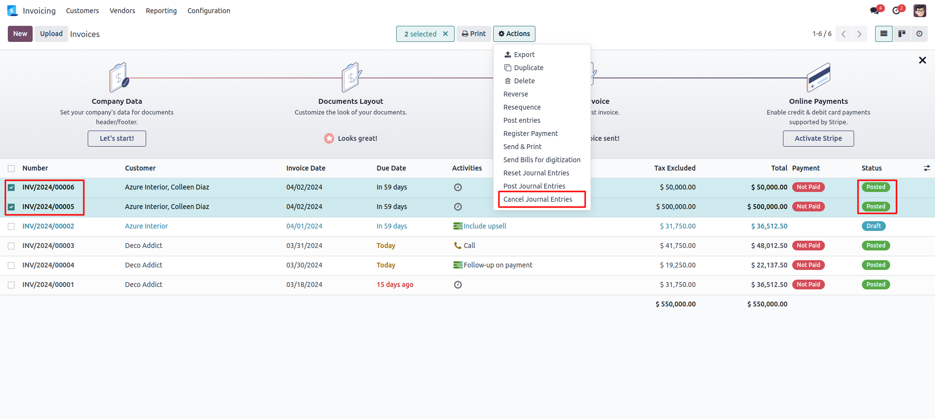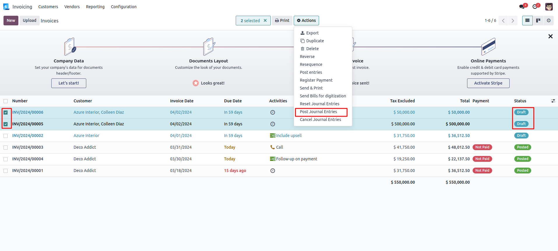 Multiple Journal Entries can be set to Draft, Cancelled and Reposted in Accounting.