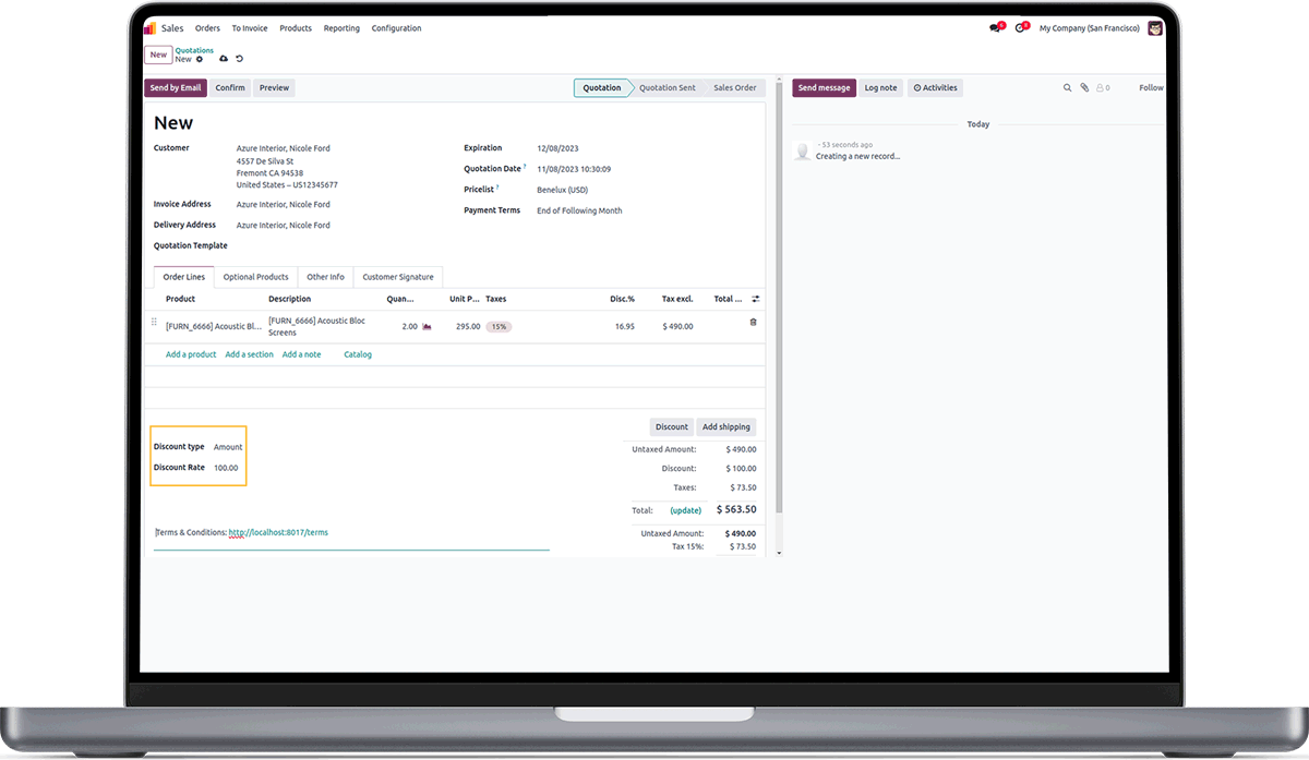 The module also allows you to set a limit for total discount in percentage. Exceeding this limit will require approval.