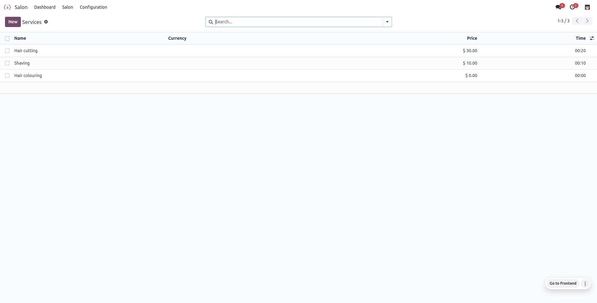 Services provided by the Spa will be listed here. You can create new services and set the price and the required time to complete the services in Hours.