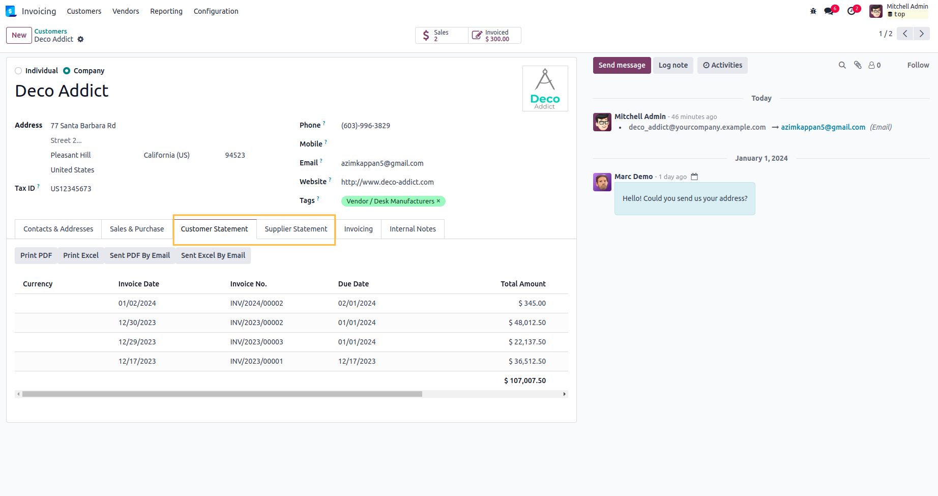 Customer and Supplier Statement in Contacts.