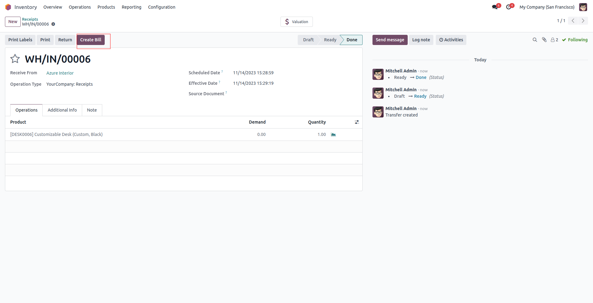 Press Create Bill button to create the bill