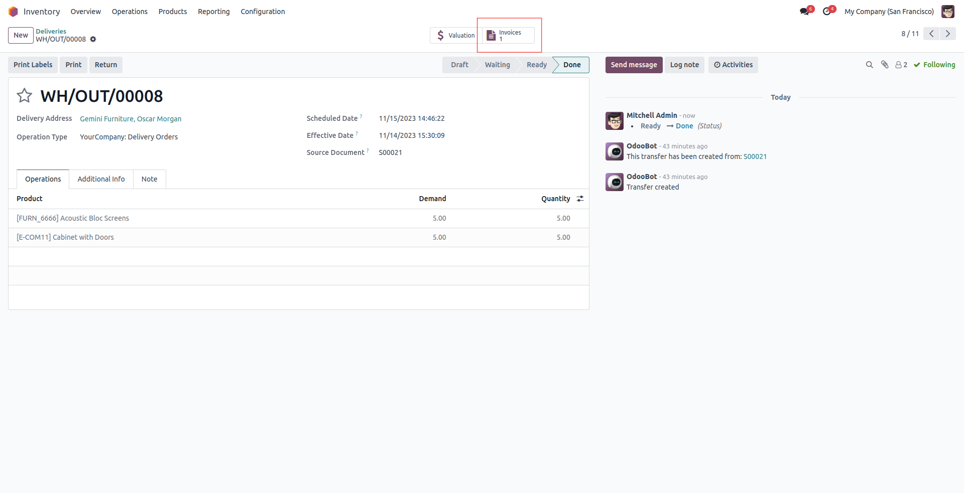 • Creating invoice, bill, credit note & refund from individual picking.