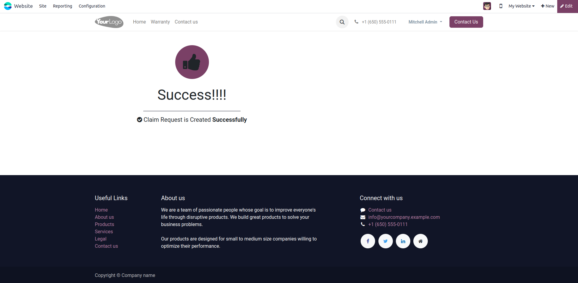 Warranty claim requests can be seen by admin