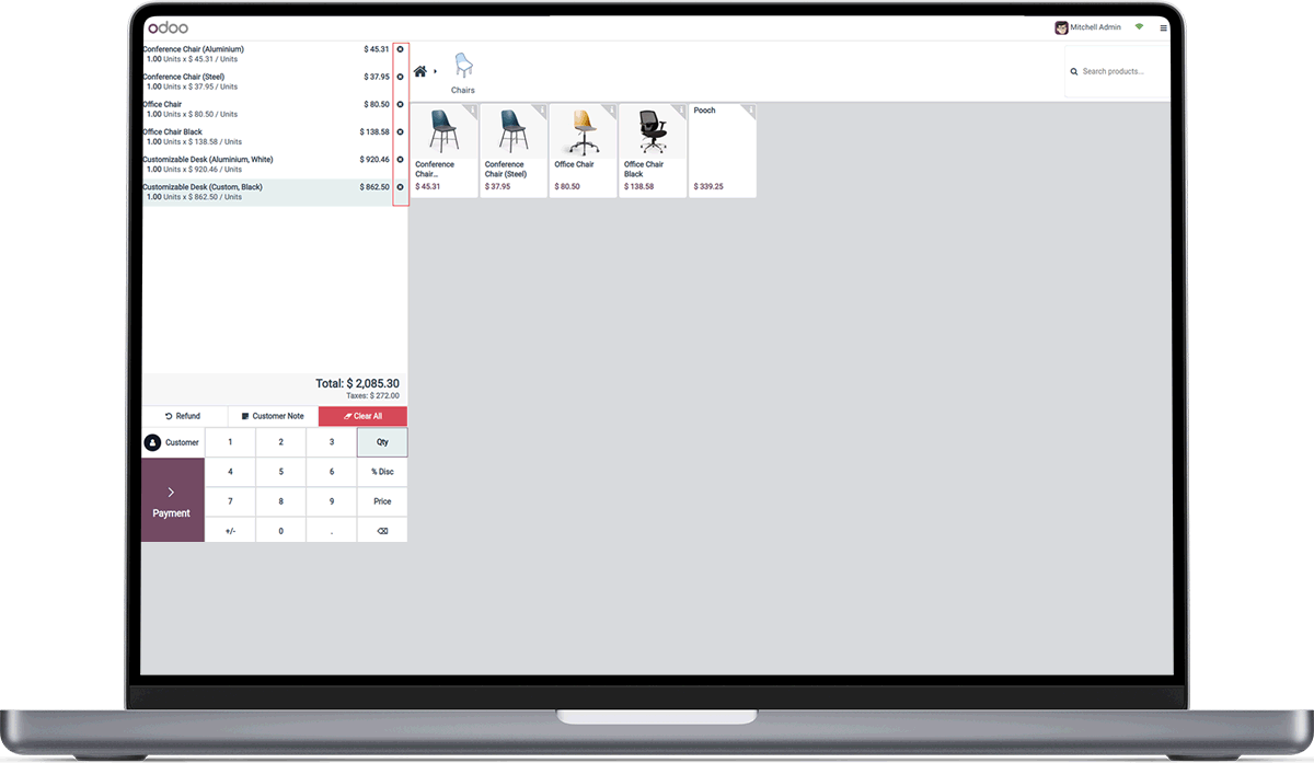 Remove each lines from selected order by simply clicking X button or clear all order with a single click.