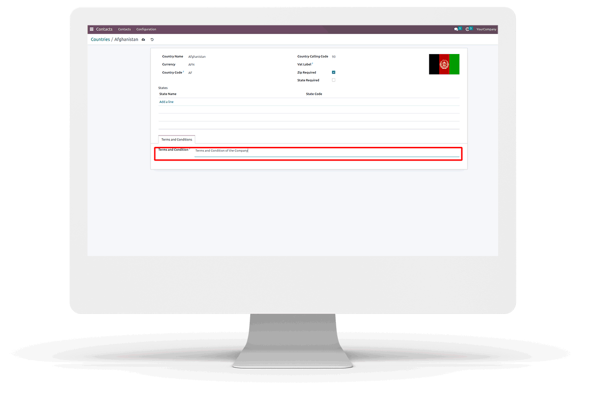 This module helps to dynamically create the terms and condition depending on the country of the customer.
