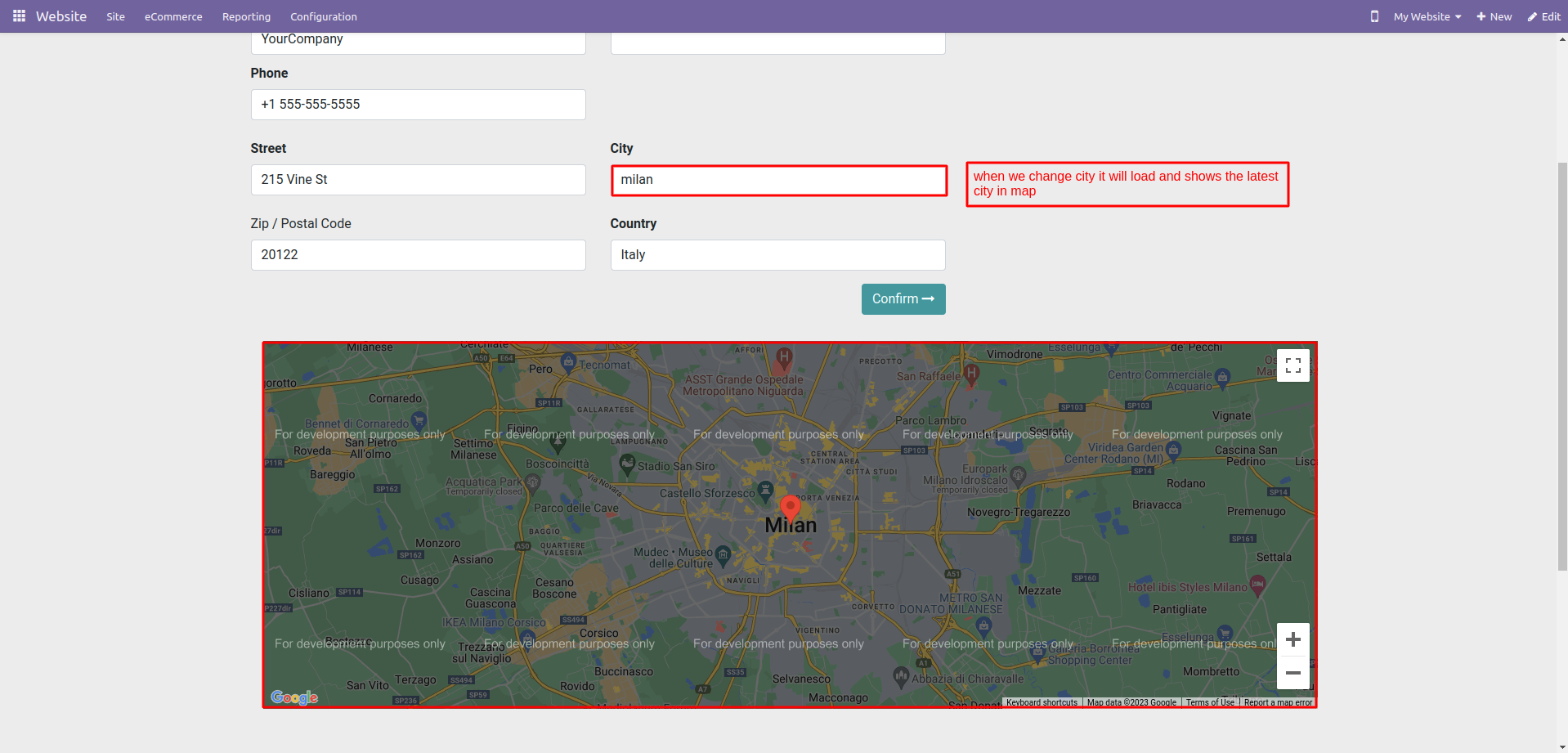 When user change their city name manually, the map will shows existing address and the country name and zip code will also change.
