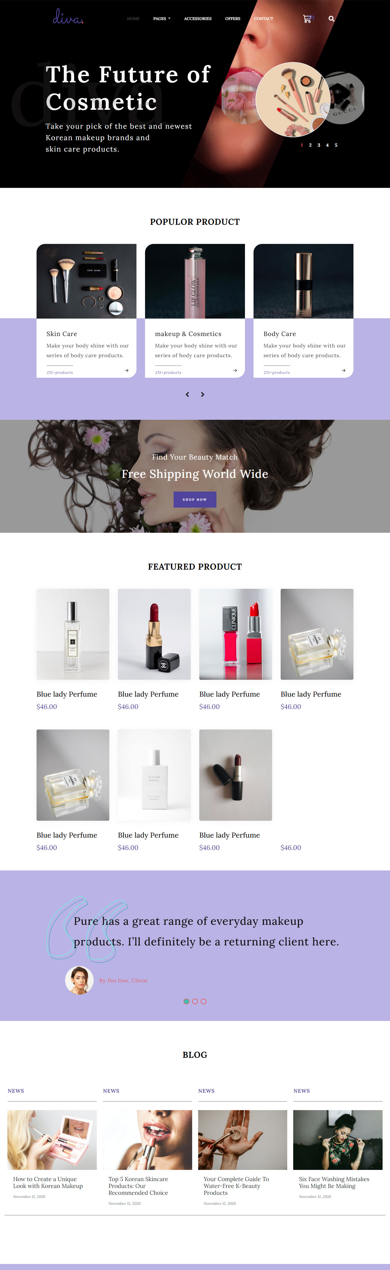 The Theme Diva brings style and creativity to your website which is all configurable with simple operational and functional tools. Moreover, it will help in changing the entire look of your website catering to every need of the website designing. You can define the best deals, has a new arrival products slider, testimonial slider, and the capability to craft attractive eCommerce website, shop view, custom categories view, product view, contact us page, and all the aspects of the website.
