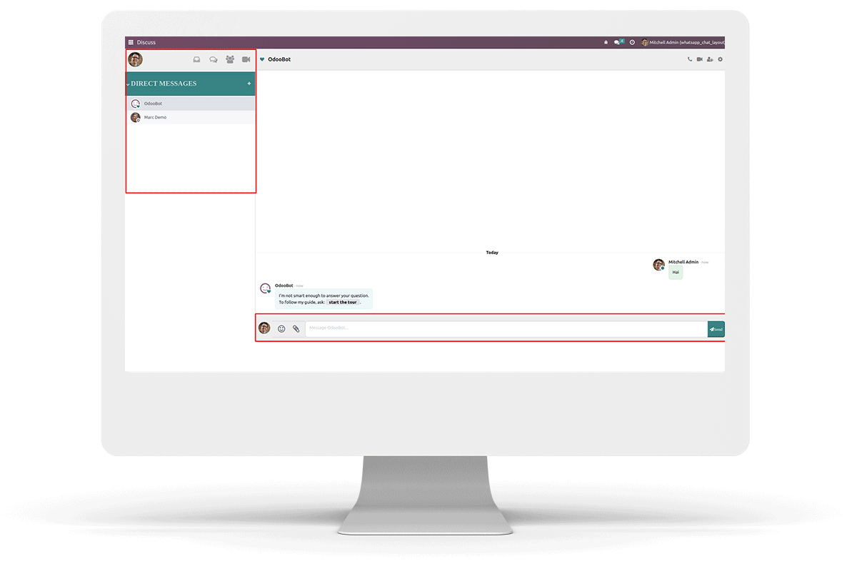 Detailed Whatsapp Chat Layout in Odoo Discuss View.