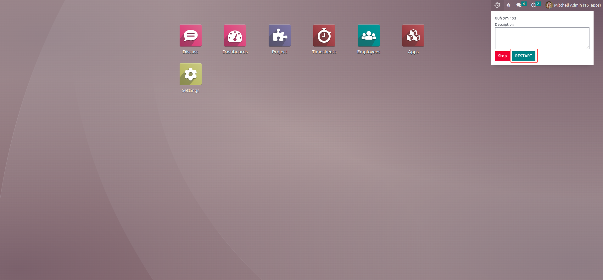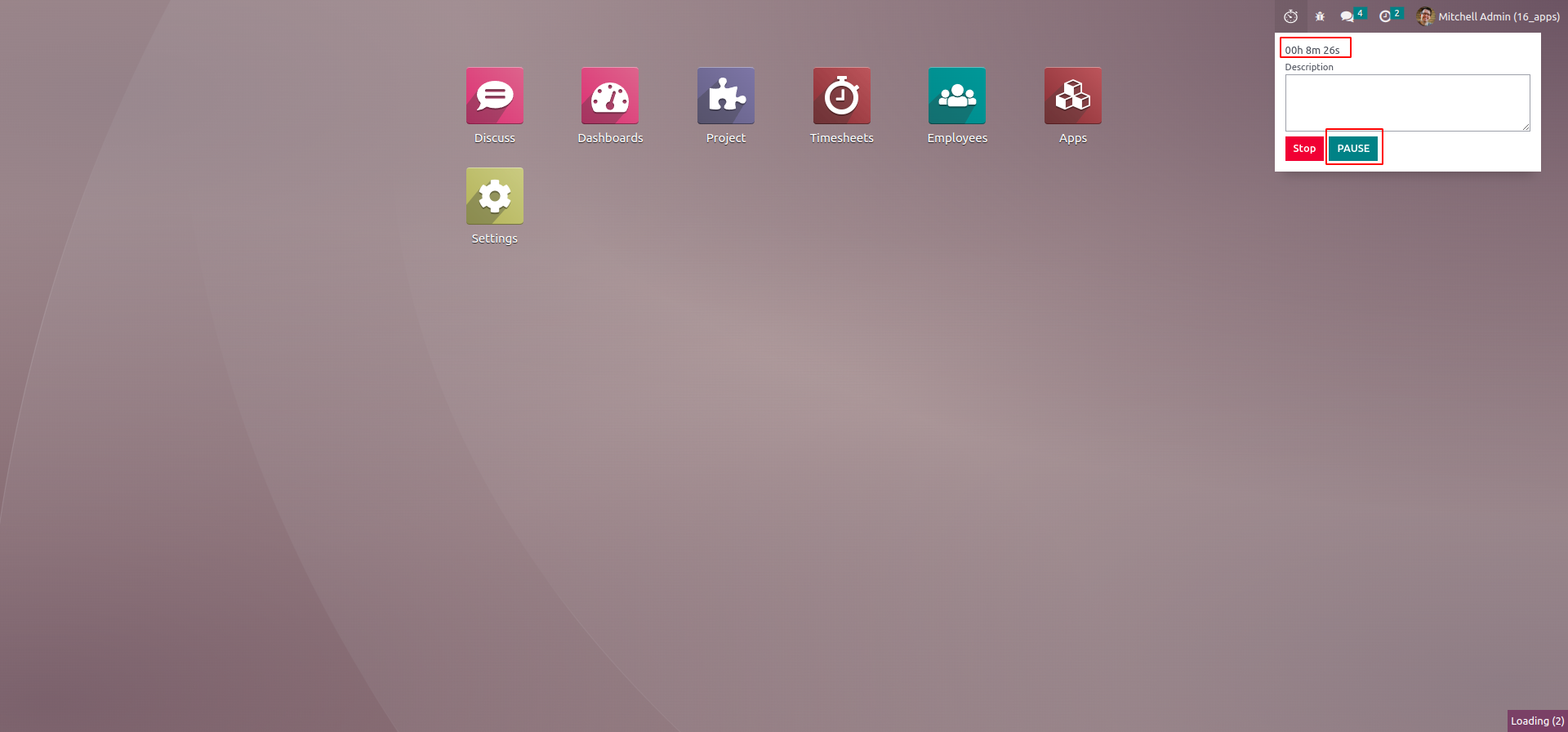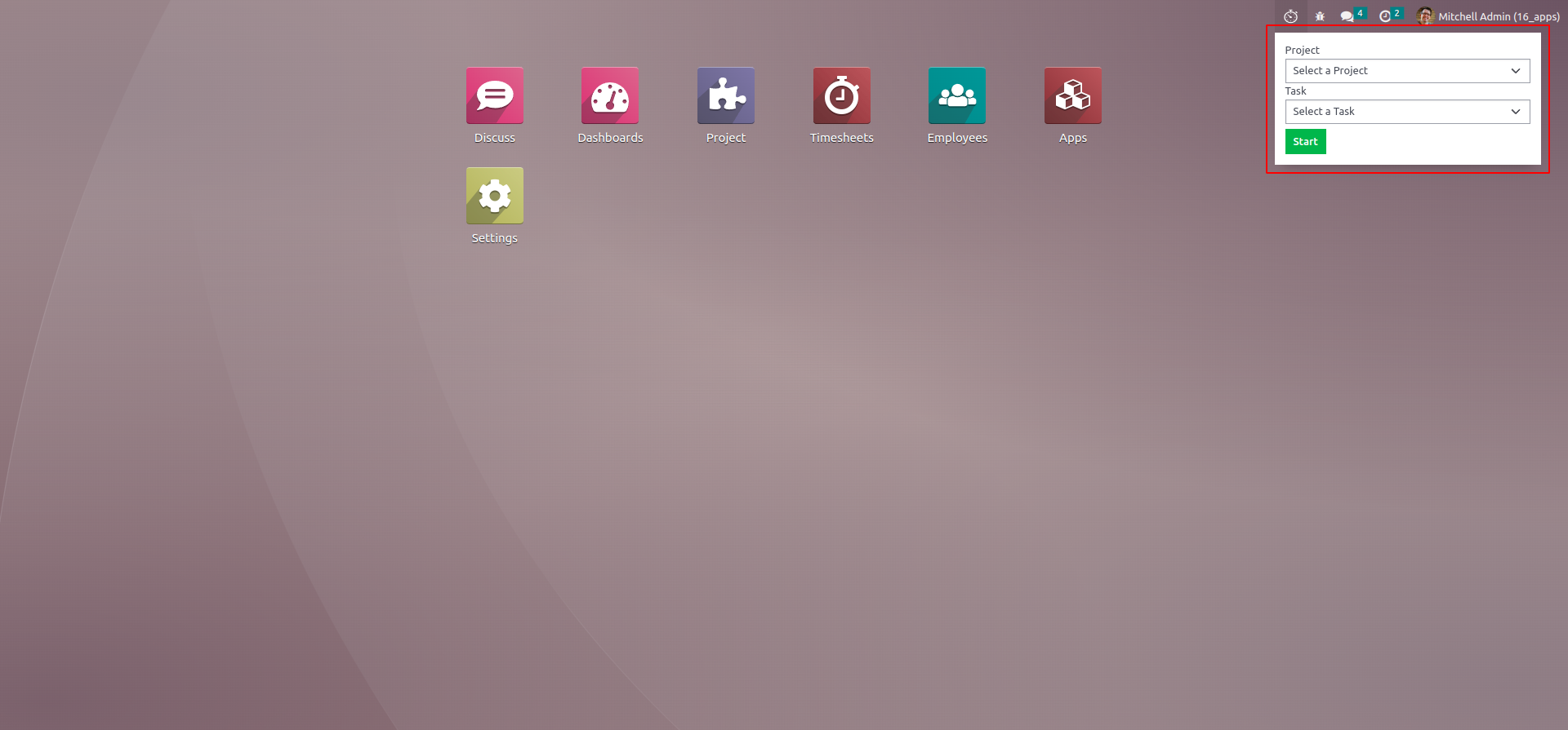 Choose project, task and click START button to start the time.