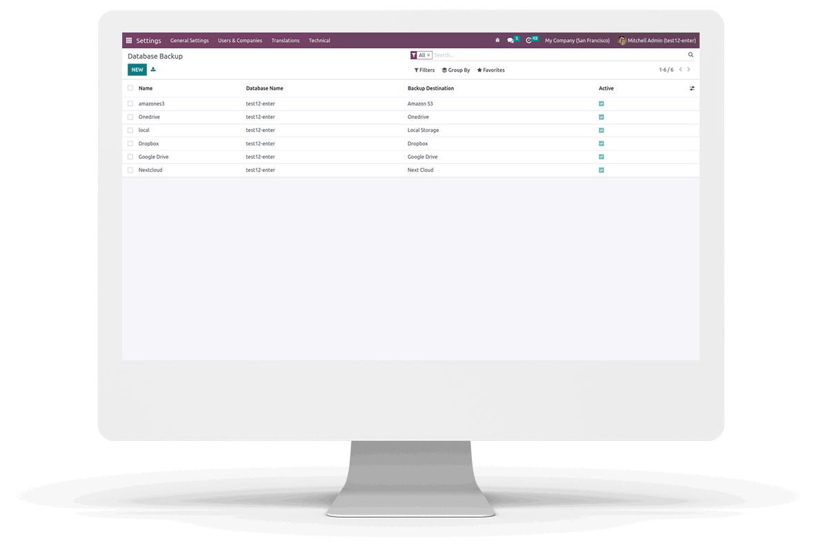 Go to Settings->> Technical->> Backup Configuration to set up Database backups