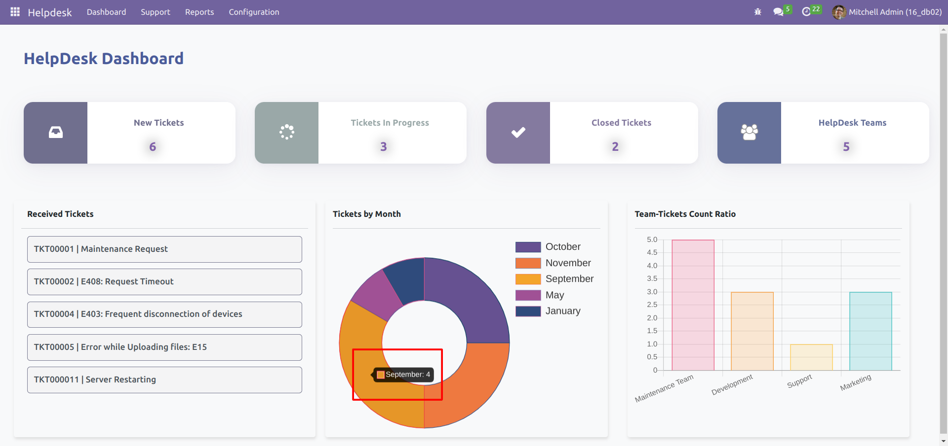 Detailed Dashboard View for Helpdesk Management Module