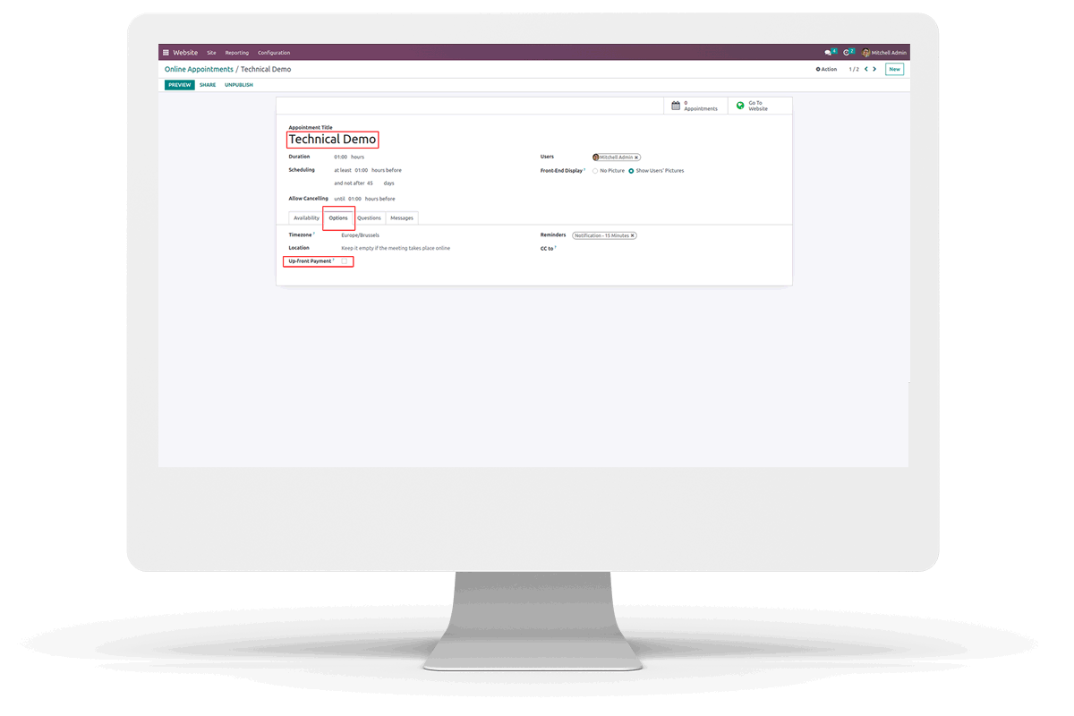 From Website > Configuration > Online Appointments > options , you can enable the checkbox to configure website payments.