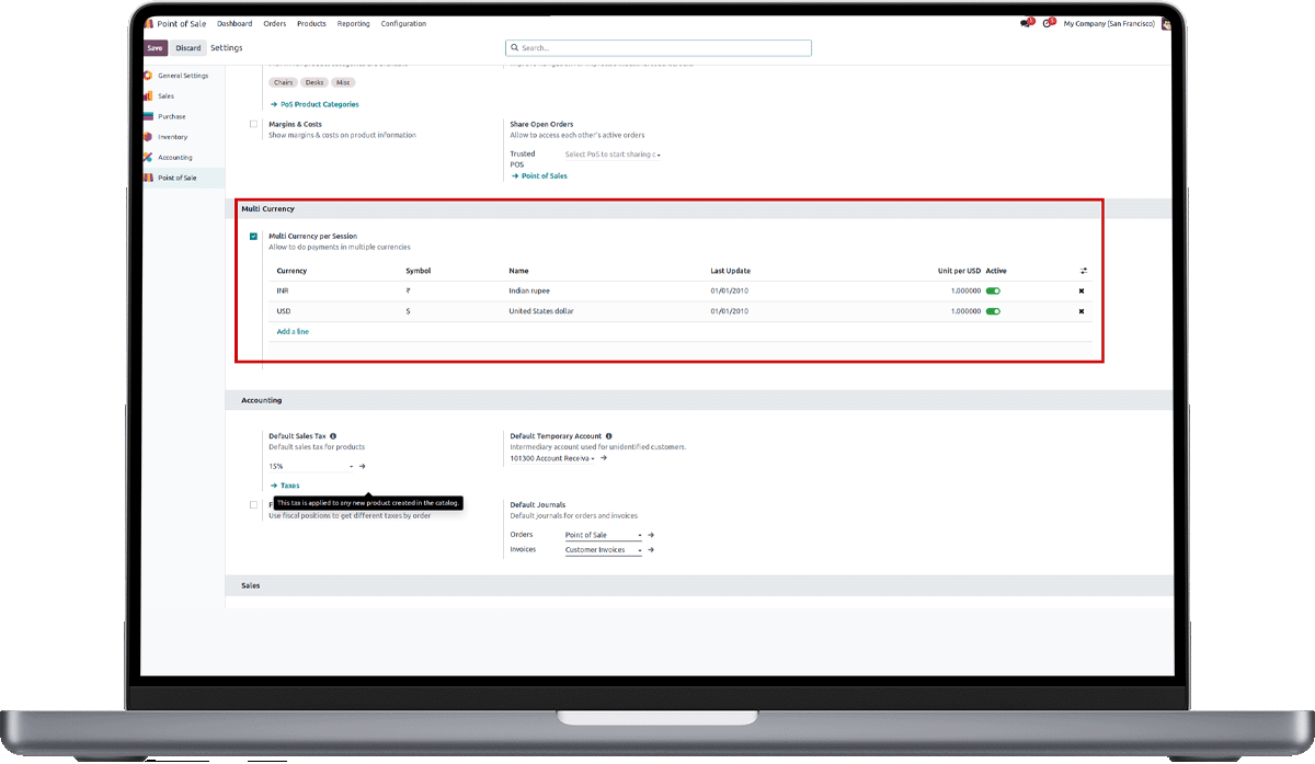 This Module Allows To Use Multiple Currency In Point of Sale Module.