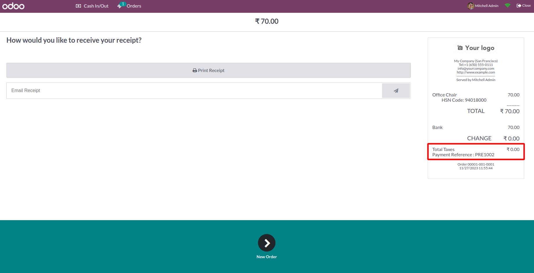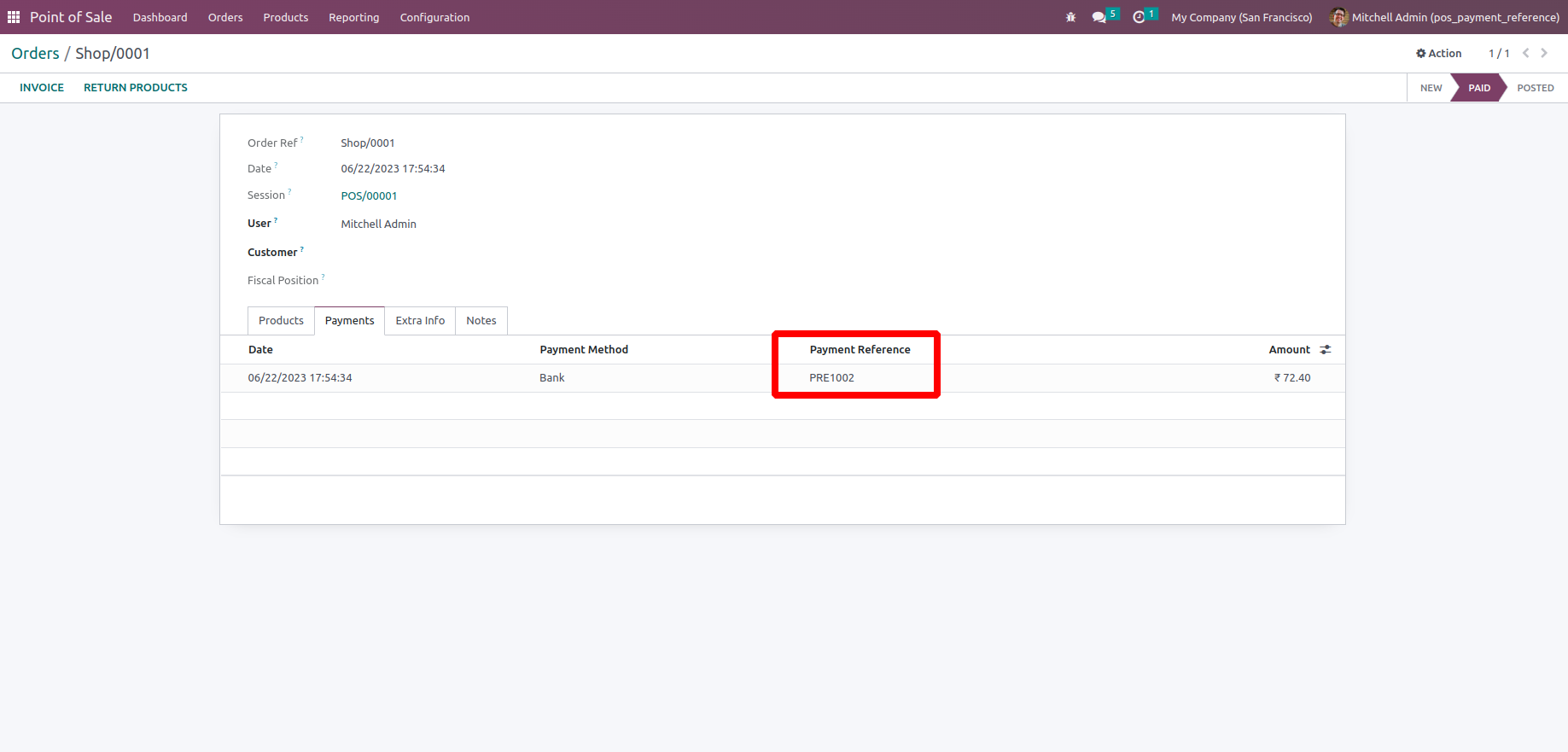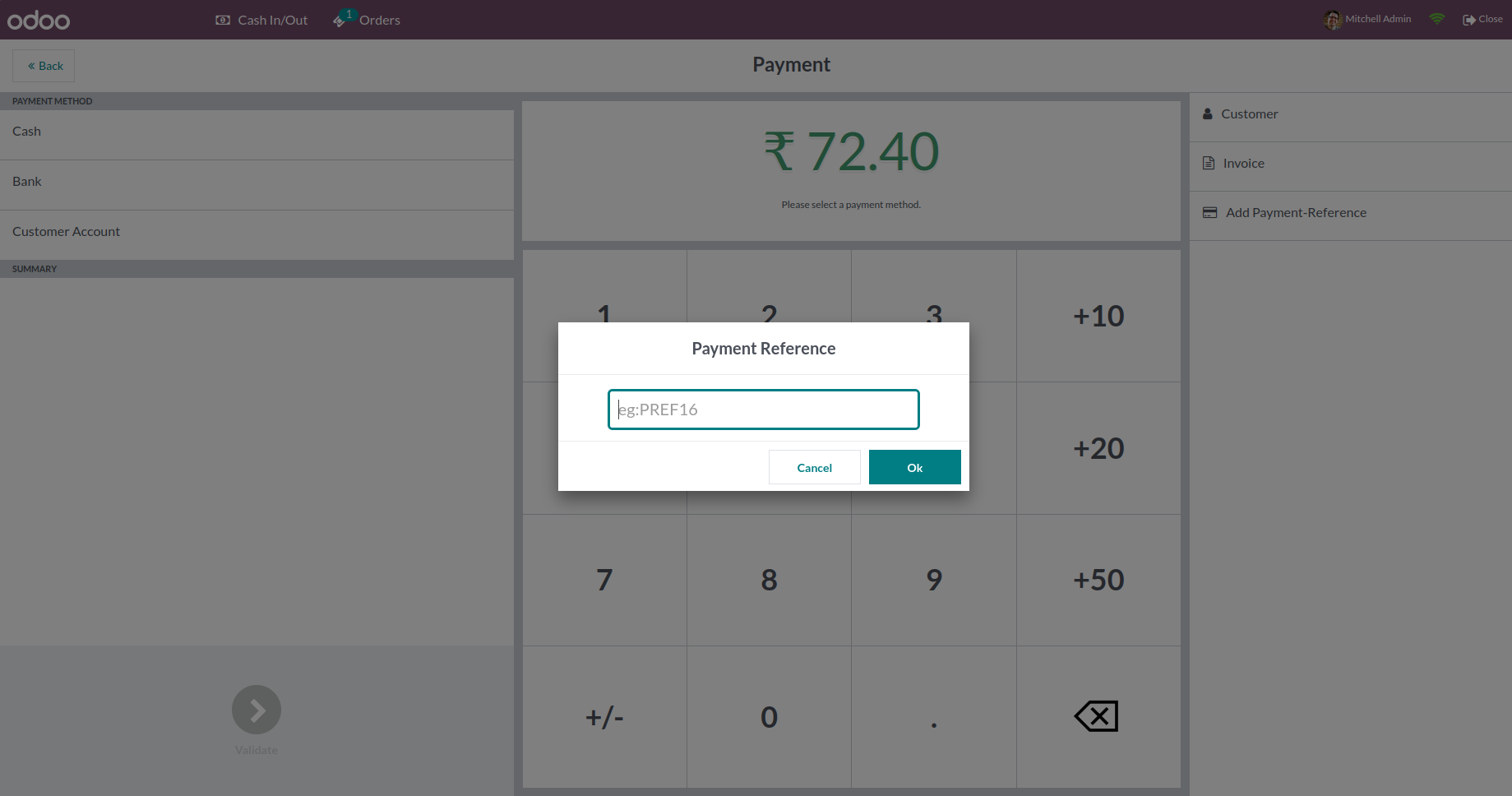 User can add payment reference from payment screen, and it will be added to the pos order at the time of order validation.