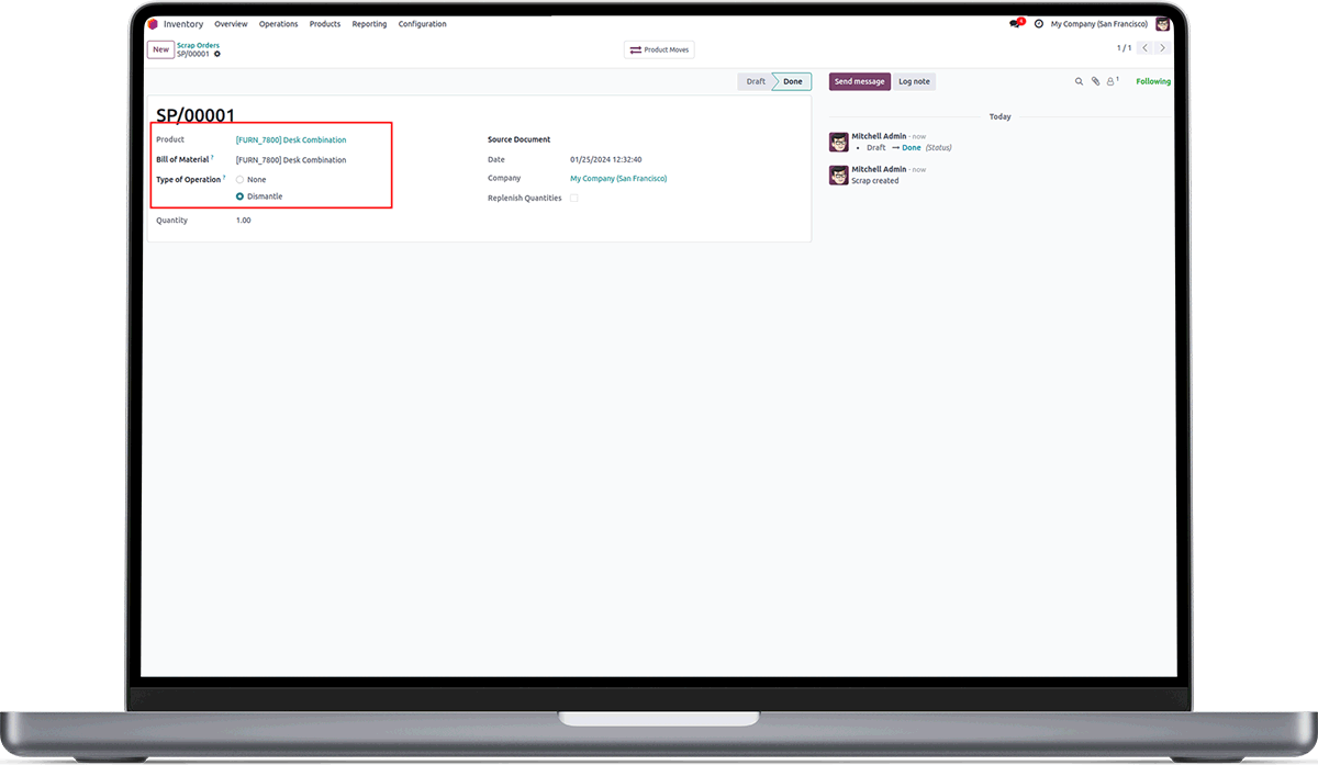 Managing Scrap in a company and dismantling the product and reuse non defected component.