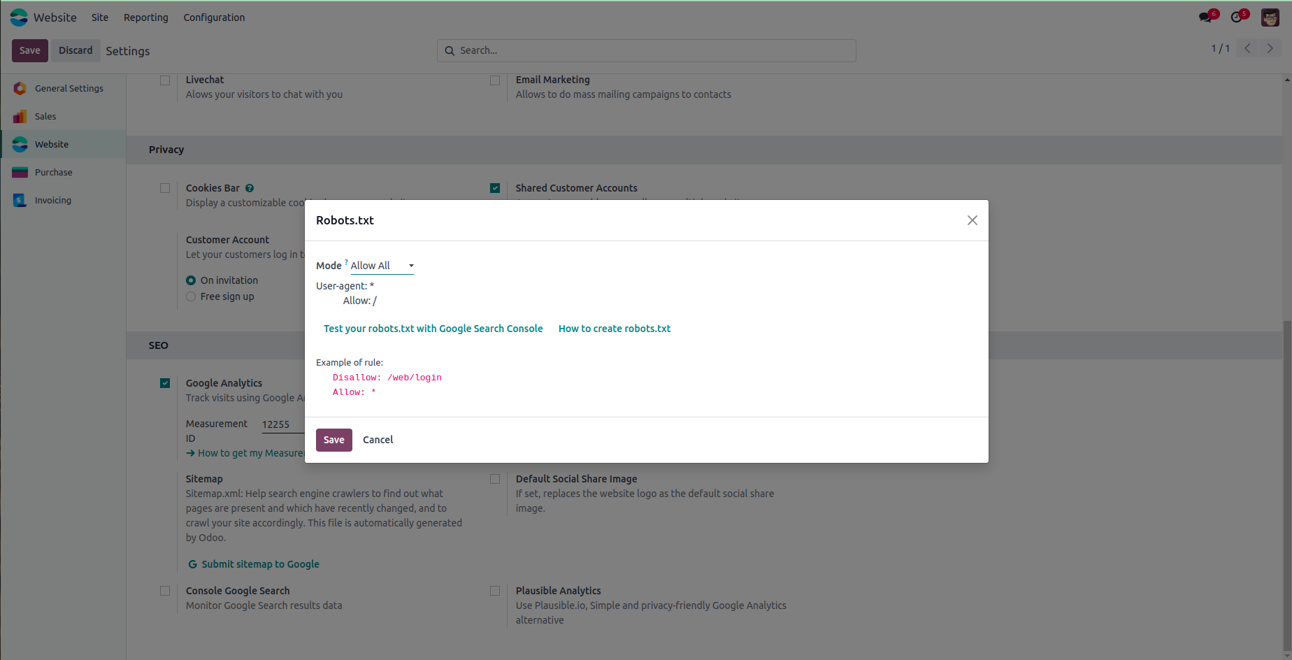 This Module Allows Users to Customize their robots.txt File, Informing Search Engine Crawlers About the Accessible URLs on your Site. Its Primary Purpose is to Prevent Overloading your Site with Requests.