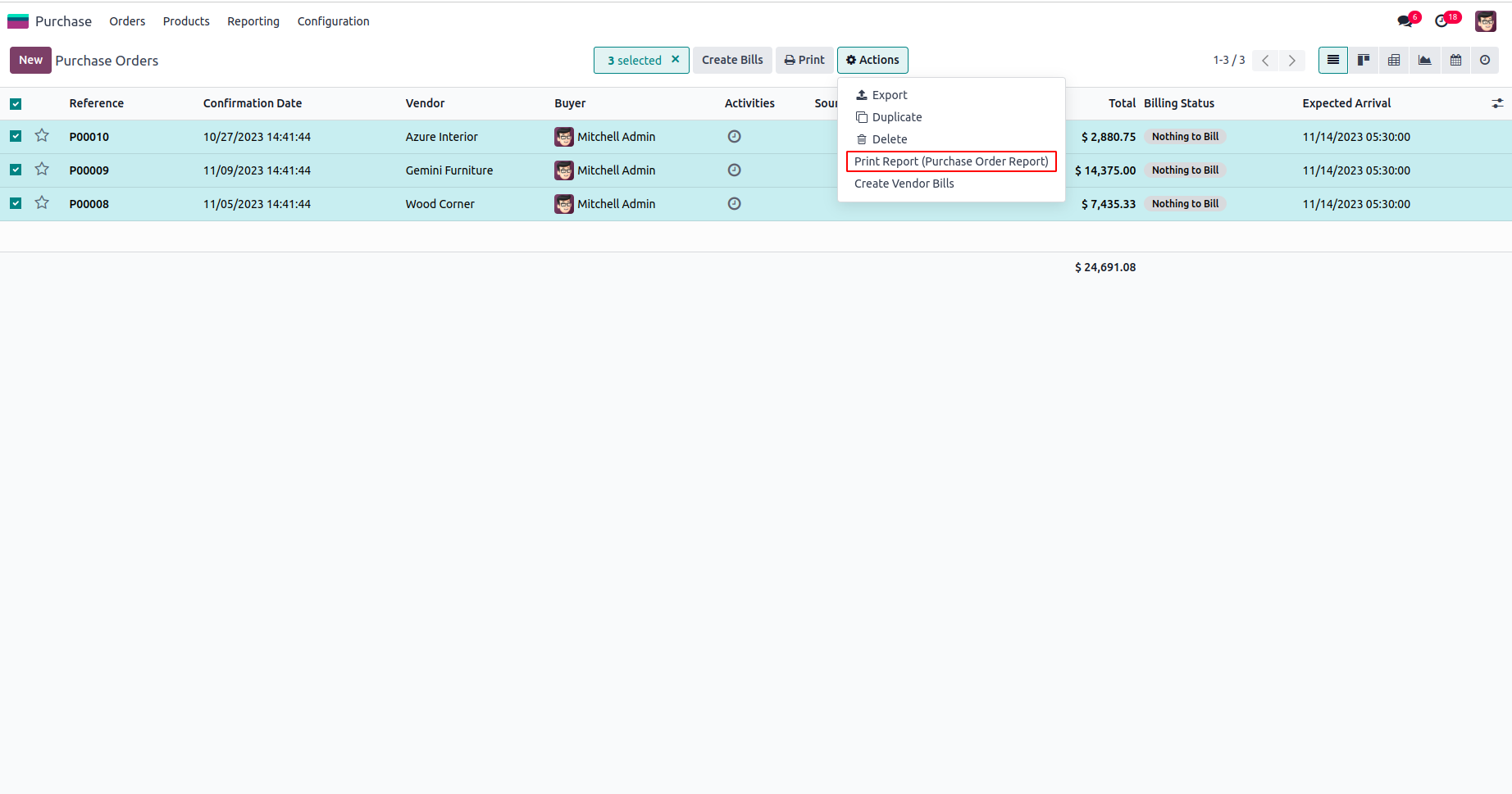 Users can likely find and access various reporting-related functionalities or options in this dedicated Reports menu within the broader Action menu.