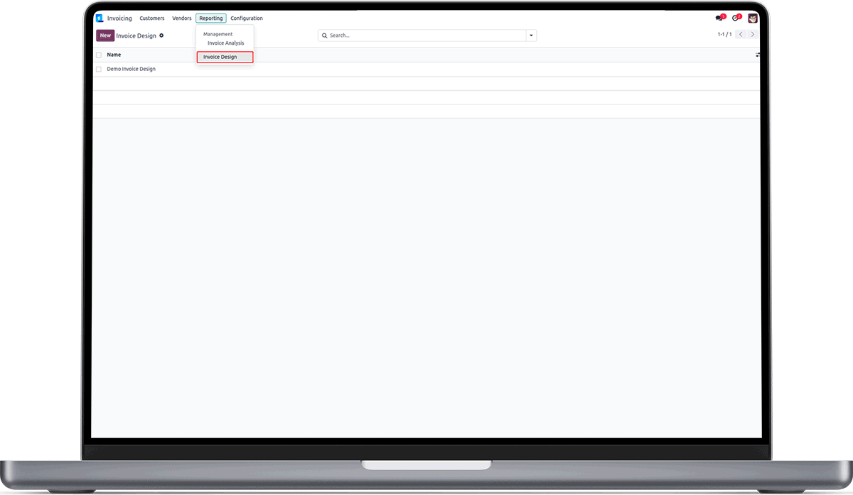 Go to Invoicing -> Reporting -> Invoice Design. Here, you can design template for your custom invoice.