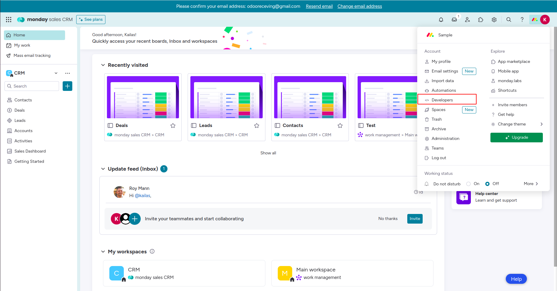 Imports Contacts from Monday.com
