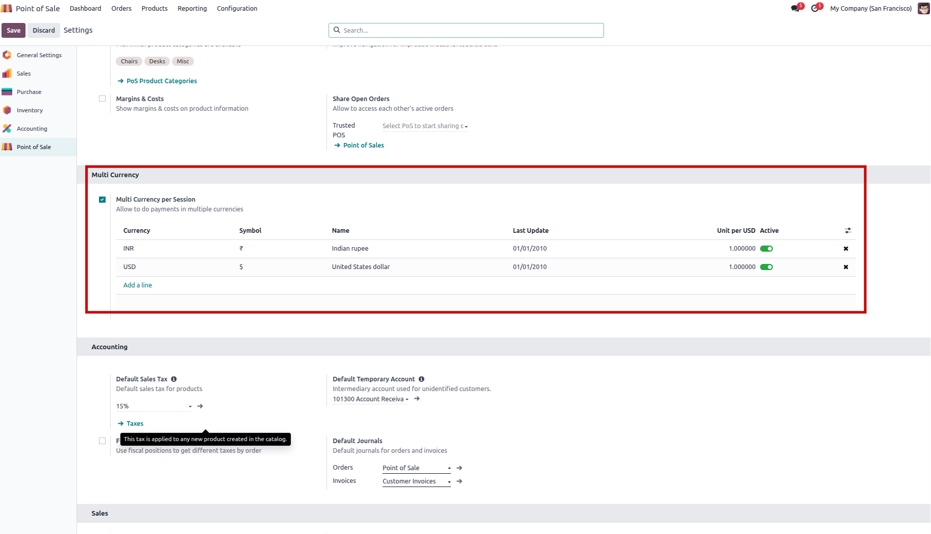 This Module Allows To Use Multiple Currency In Point of Sale Module.