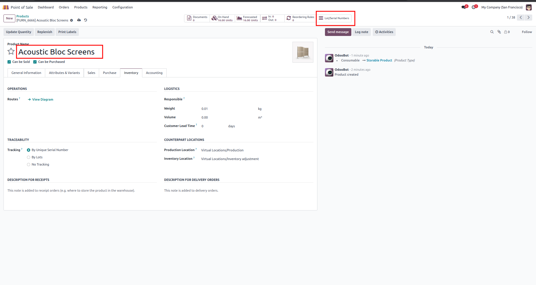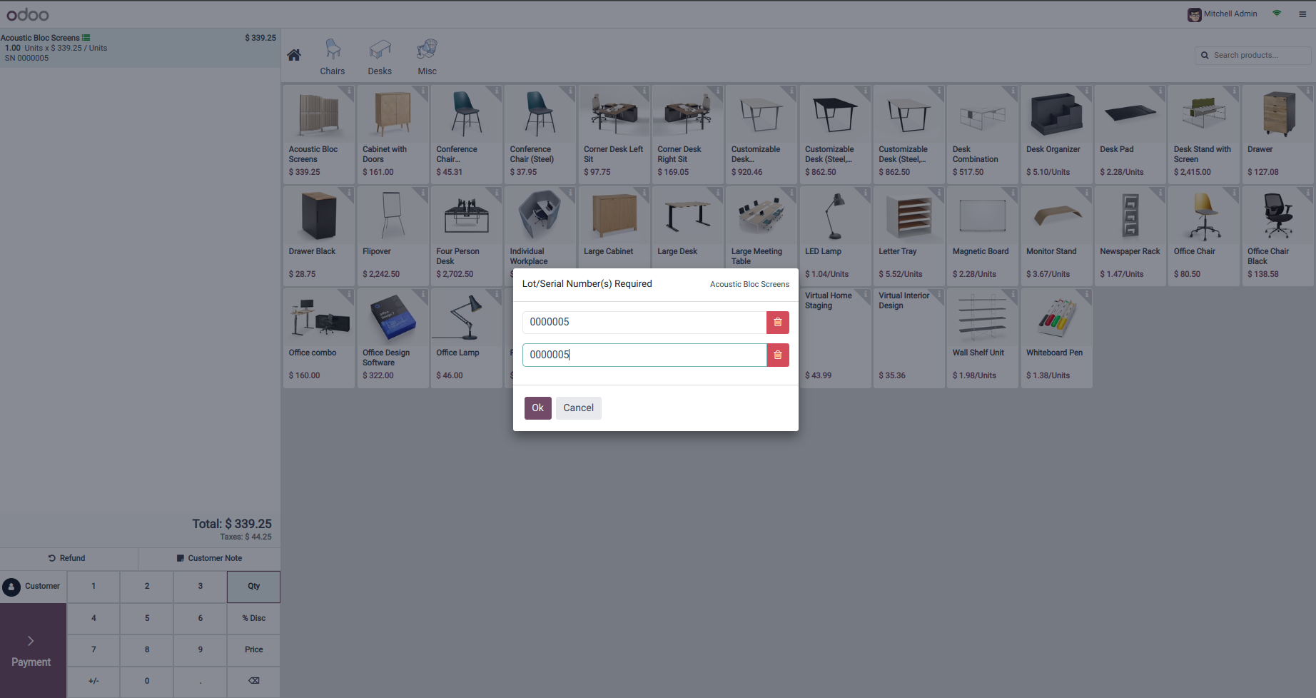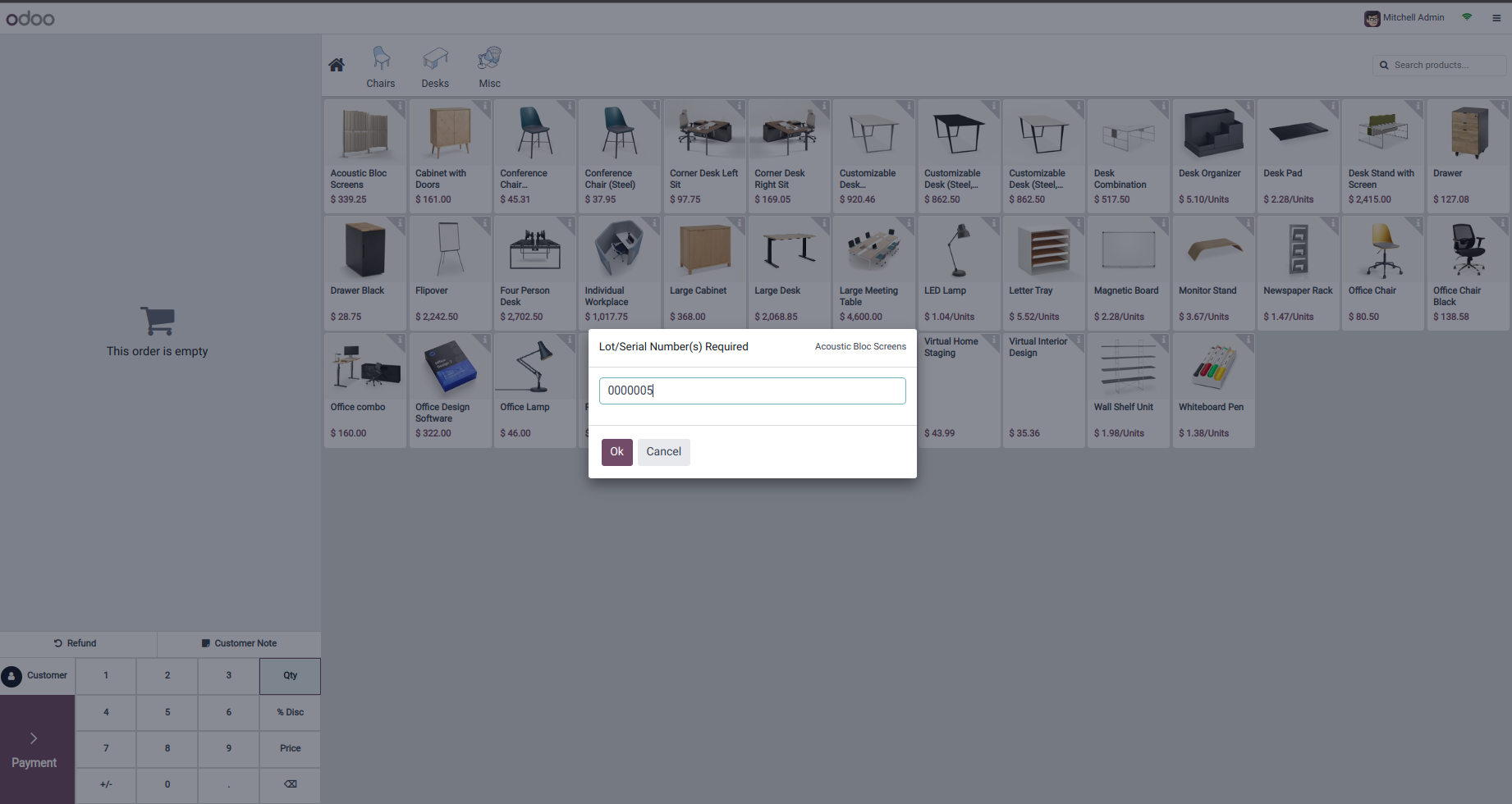 Add a Product with a Serial Number or Lot Number to the POS Product Screen.