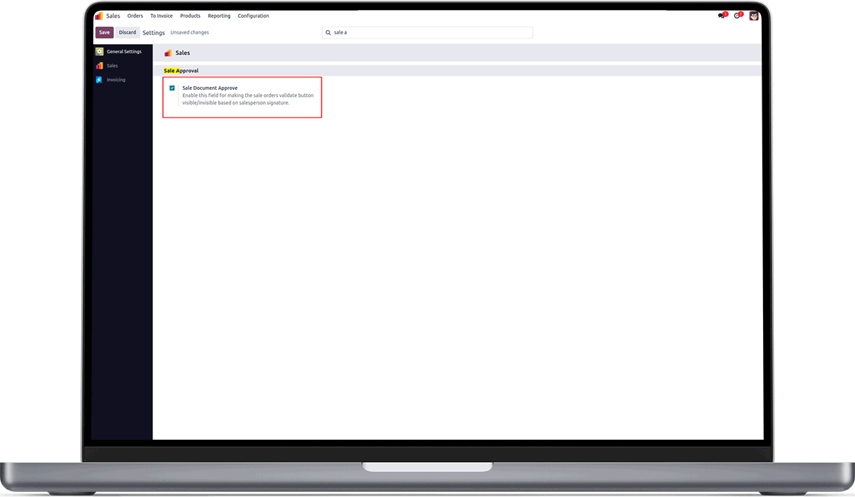 From Configuration->Settings->We can enable/disable the option for validating the documents based on the salesperson's signature which is "Sale Document Approve".