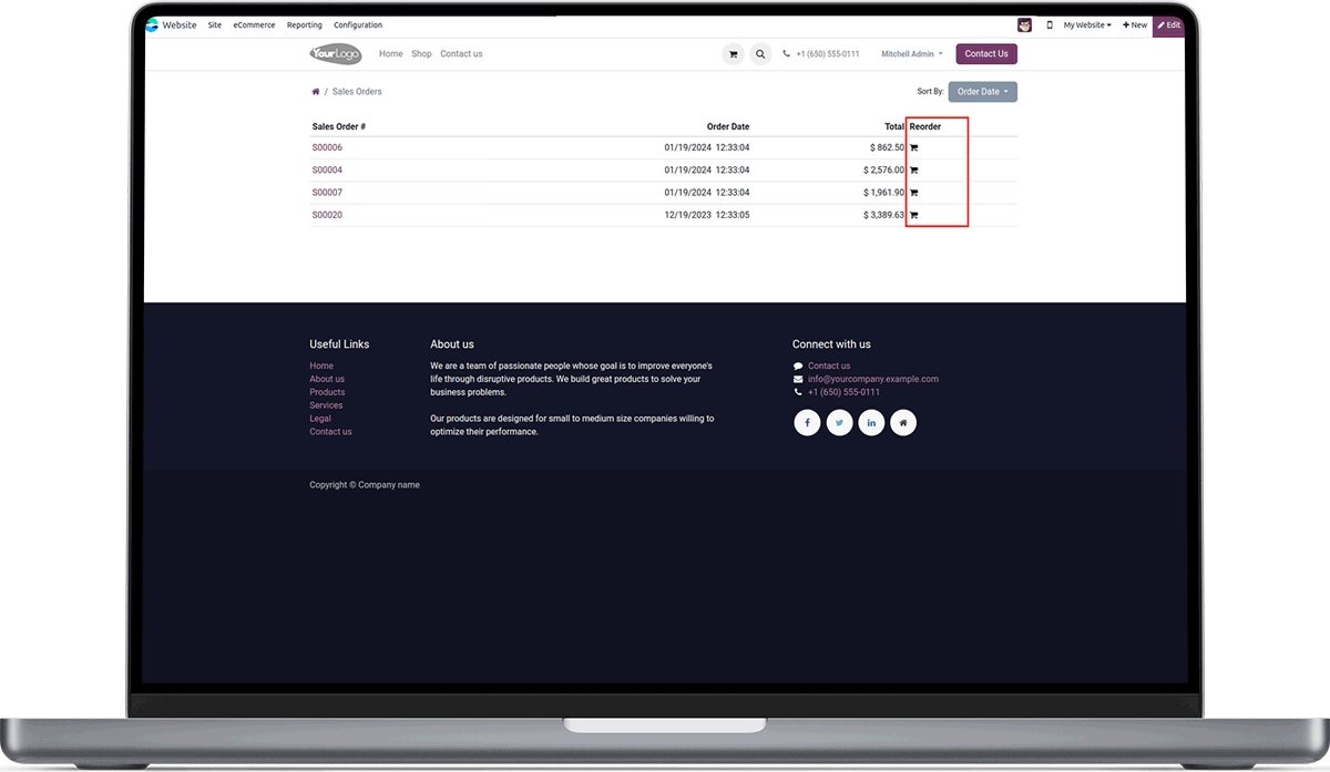 Repeat a sale order quickly from sale order history(my/orders) of Customer.