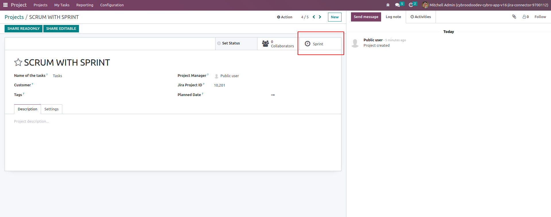 Sprint feature is Added in Odoo For Team Managed project Which is imported from Jira.