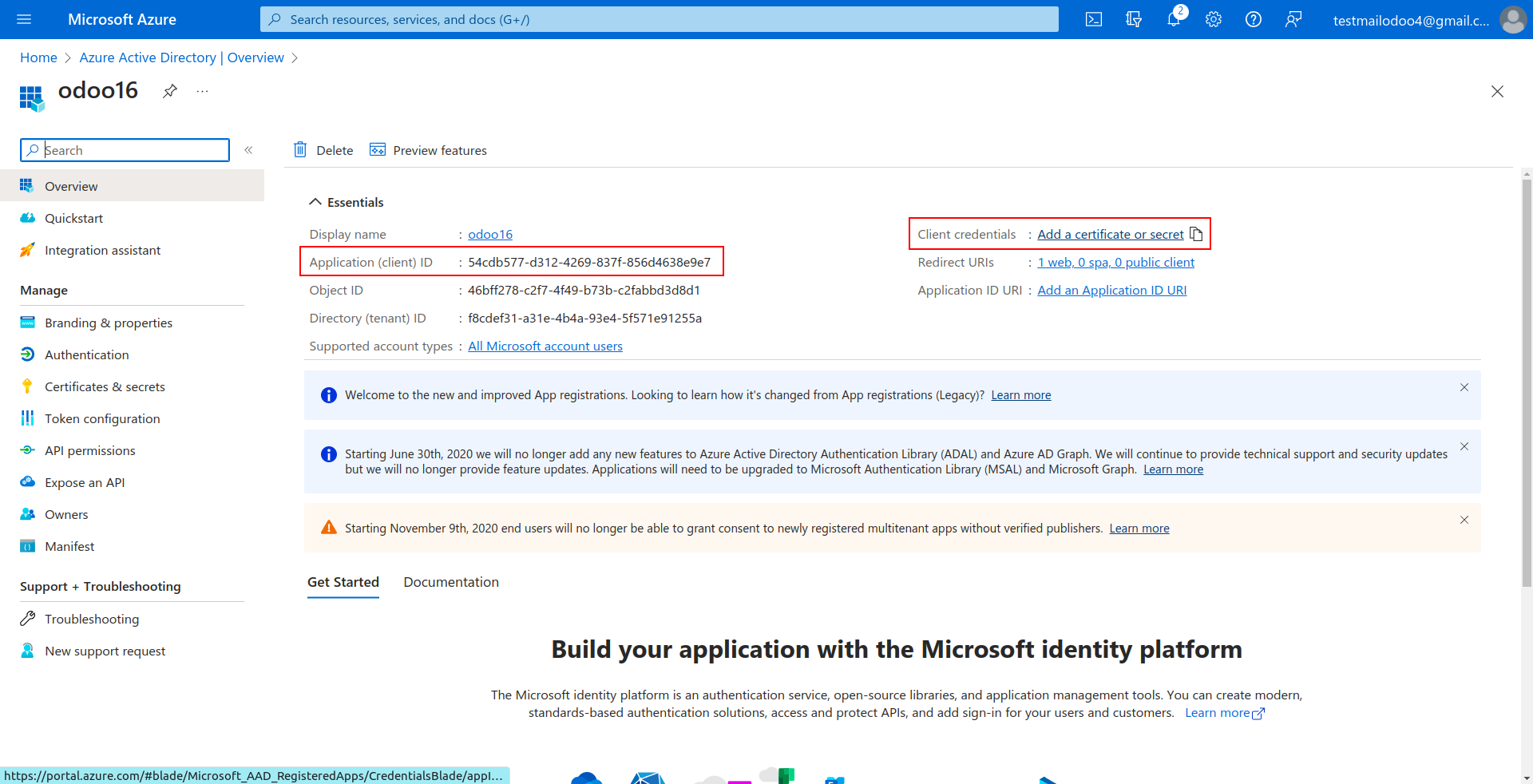Registering on Microsoft Azure --> app registration will get client id and credentials