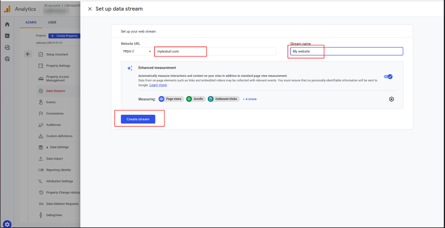 After that you can see your stream in data stream and copy the 'MEASUREMENT ID' from there