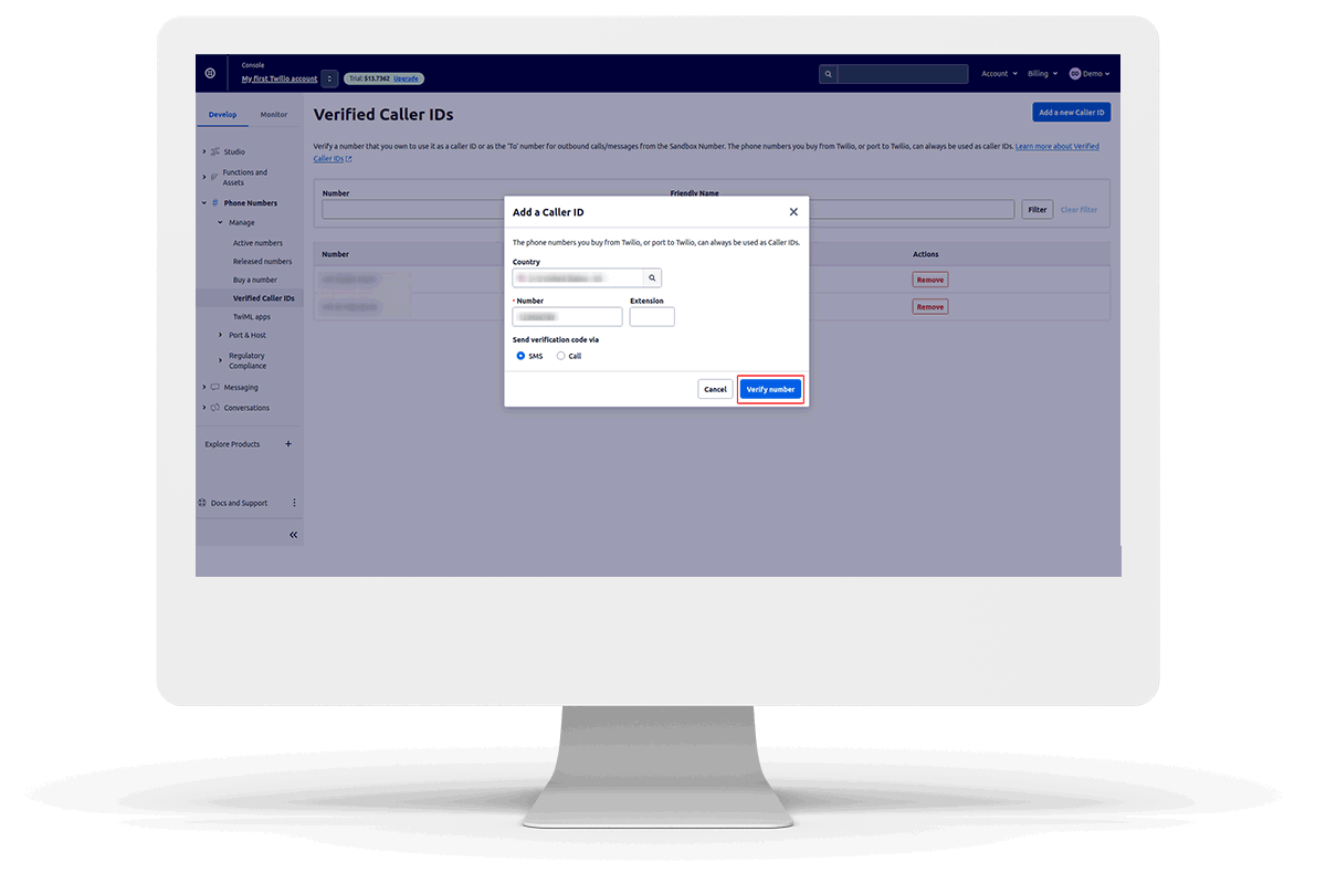 Navigate to Phone Numbers -> Manage-> Verified Caller IDs and click Add a new Caller ID button.