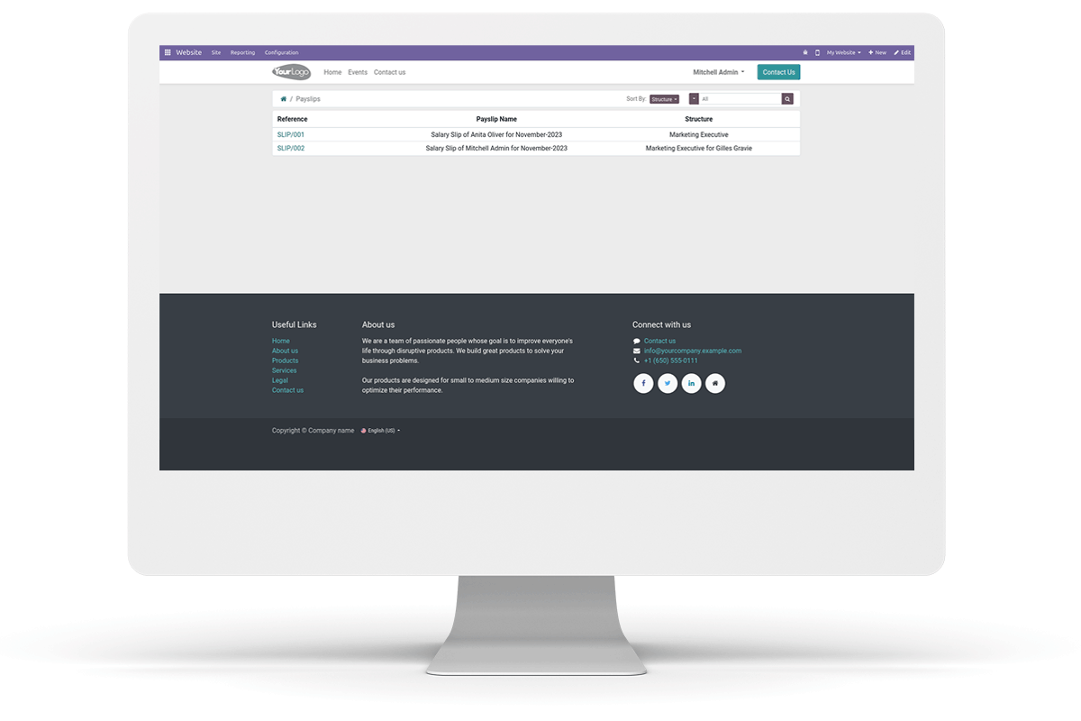 Employees can Log in and see, their Payslips, Shifts and Events