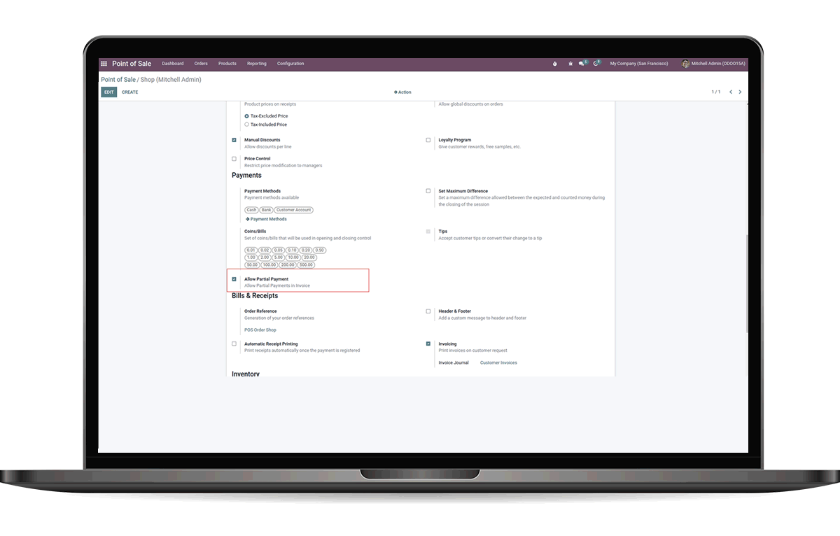 The Odoo POS Partial Payment Module enables customers to make partial payments instead of paying the full amount at the point of sale . This feature offers flexibility in handling payments and allows for more convenient transaction processing.