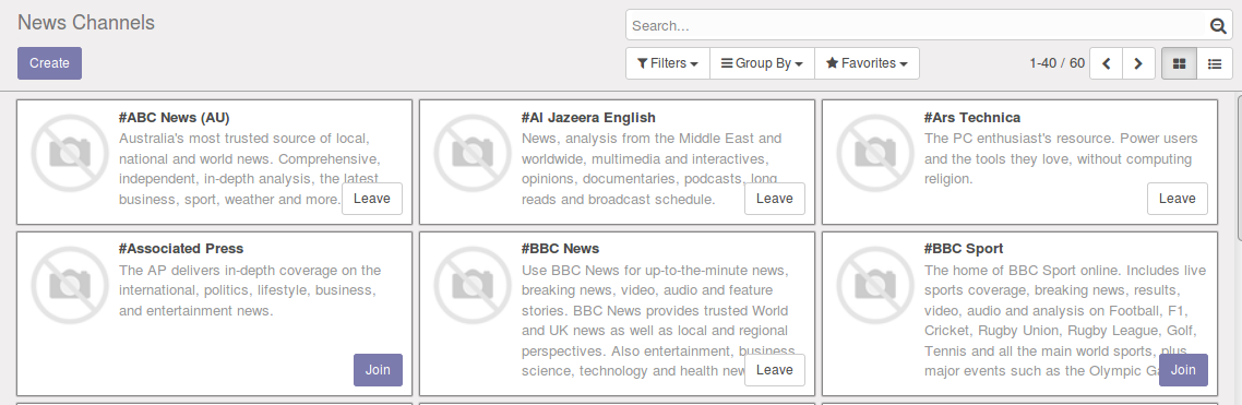 Subscribe to various news Channels provided under custom menu "NEWS". Subscribed News channels will be listed under Discuss Menu.