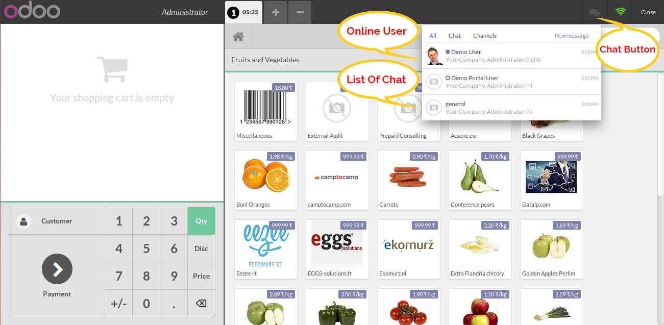 Chat Button on POS screen