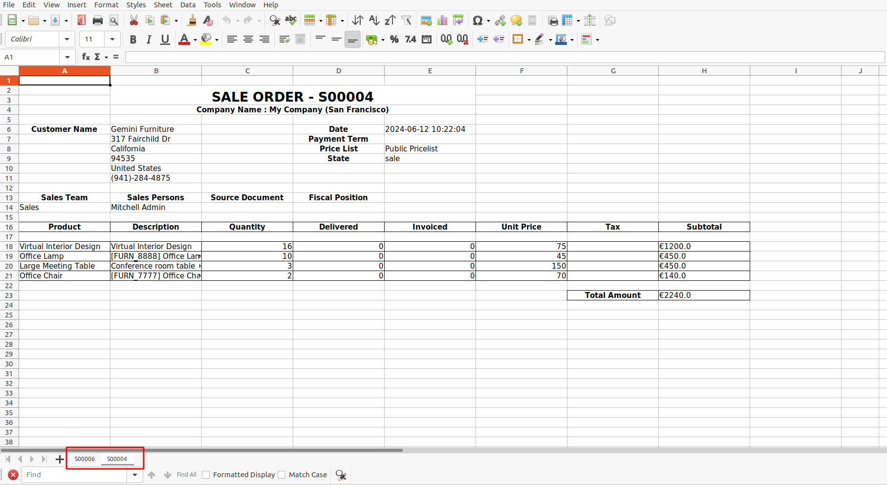 By clicking Sale Order Excel Report we can print sale order excel report.