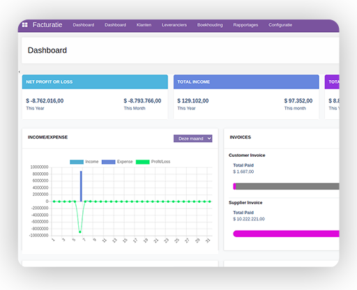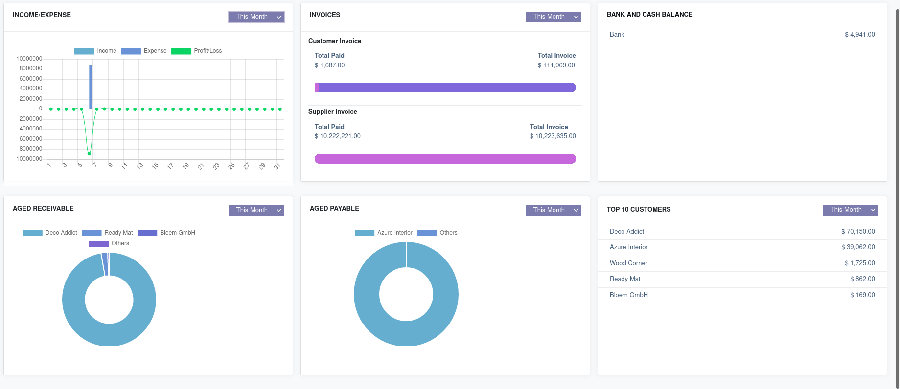 The Dashboard support report overview for Invoices,Income/Expense,Aged and for other Reports