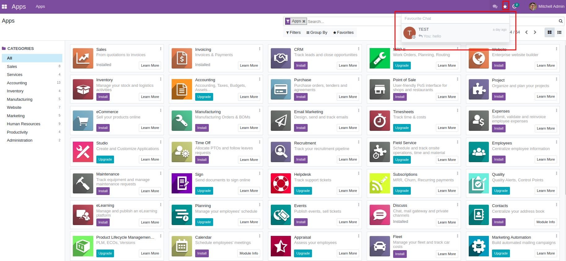 By clicking on the star icon in the systray, all the favourite chats can be view from the dropdown.