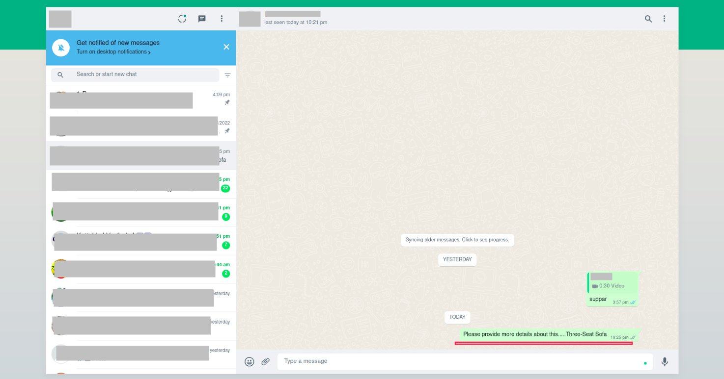 Click Continue to Chat to be redirected to the corresponding chat form for the mobile phone specified in the website settings. We can also see that personalised message as well as the product we selected.