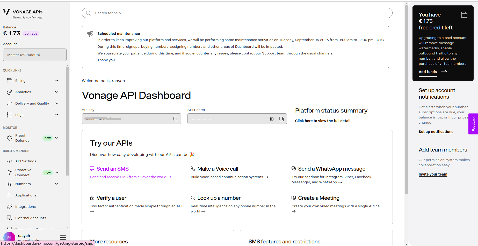The credential for the gateway vonage can be accessed by creating account in each platform we get the credentials for different gateways. To create Account in Vonage platform Click Here
