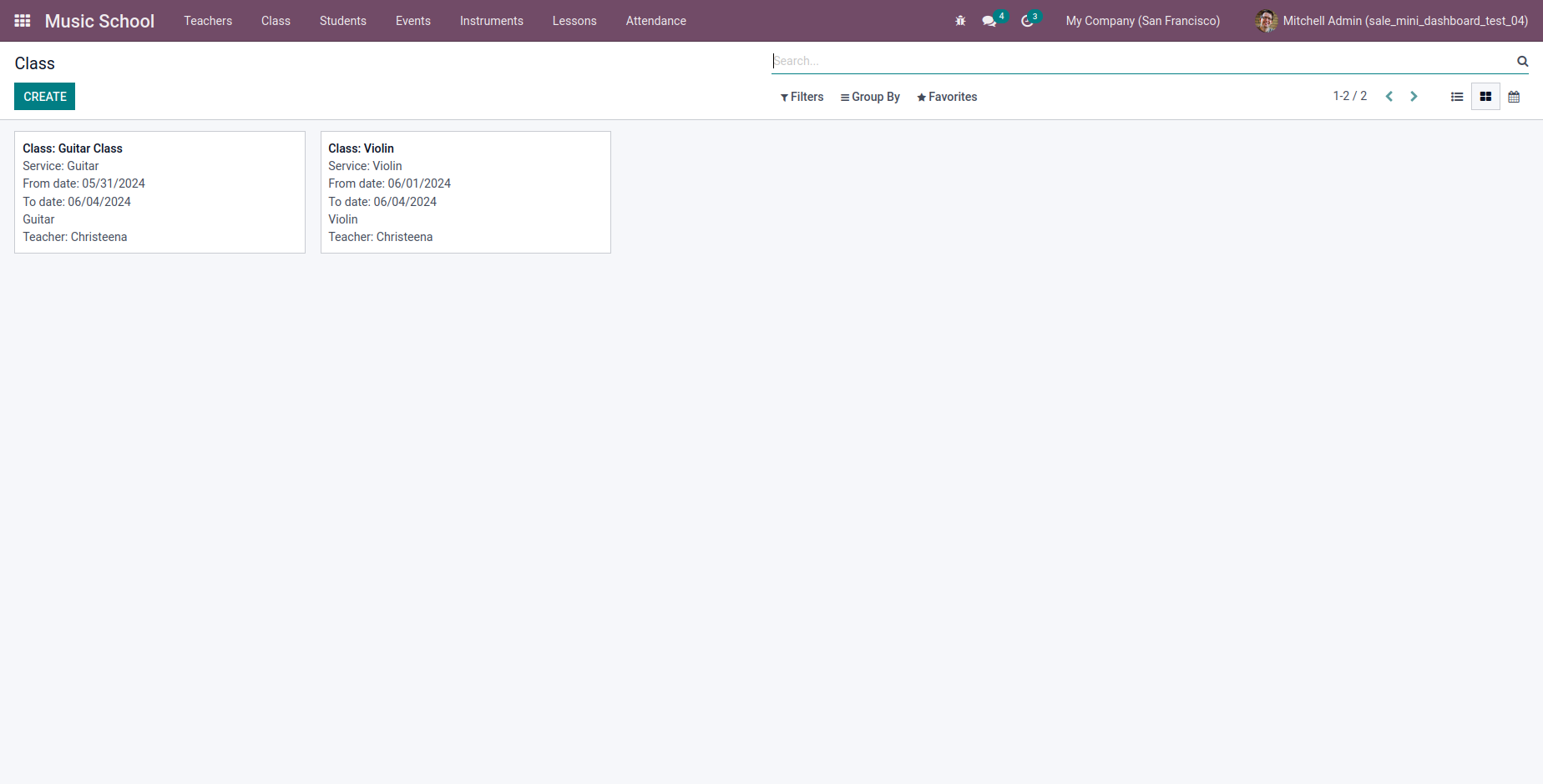 Music School institute is a core module which can manage any type of music school. The user can download the module and manage the music school with lots of different class. It can be used to manage music school event, product, students, and teacher.