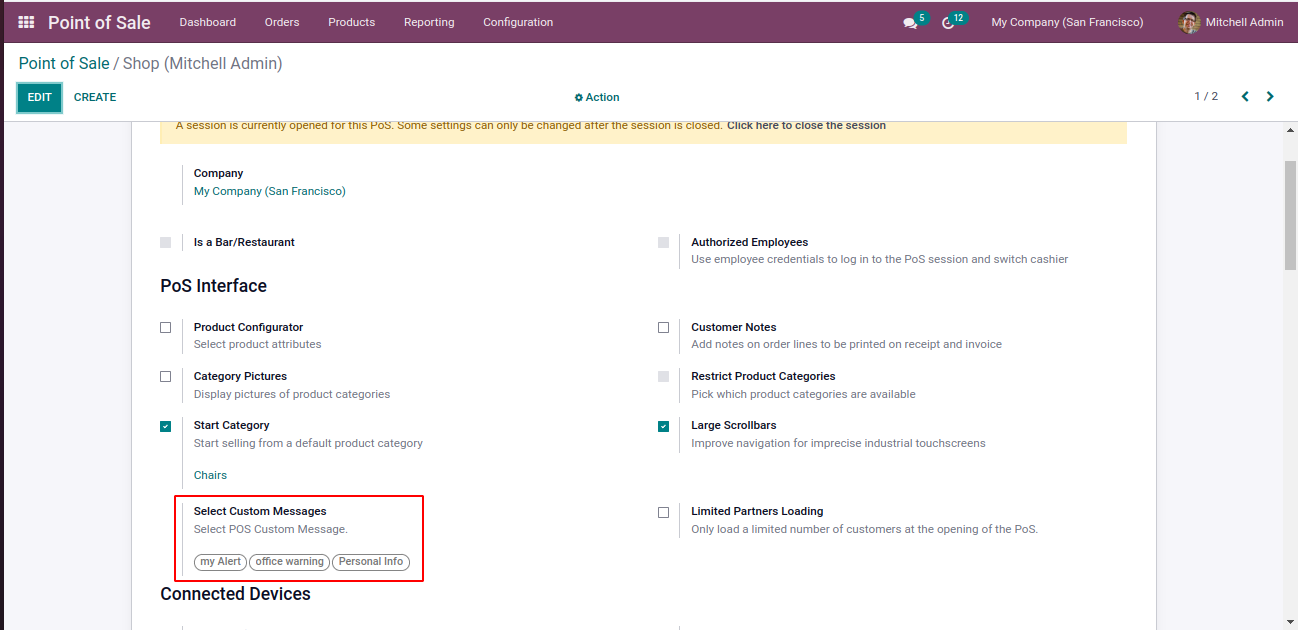 User Can Select Messages in the POS Configuration to Show in POS Screen .
