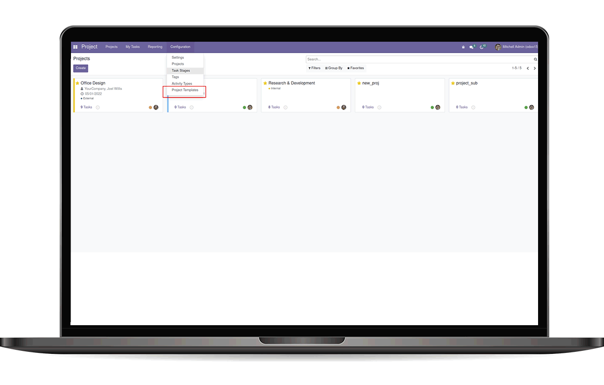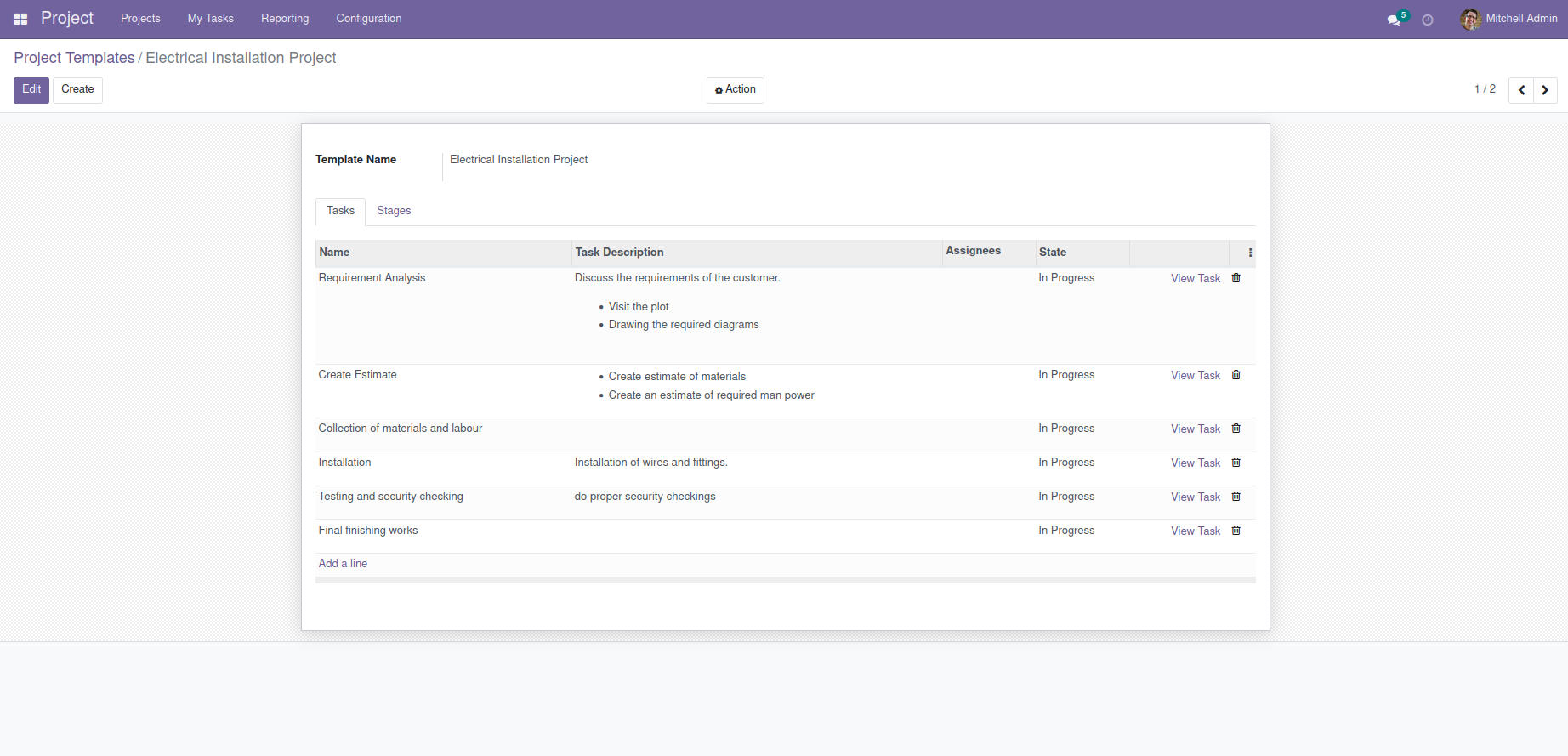 Sometimes, you may require to create different projects with similar tasks. Manually entering datas like task name, task description, assigned persons, etc for all these projects will consume a lot of time. In such cases, this module will help you to create and manage projects from project templates.