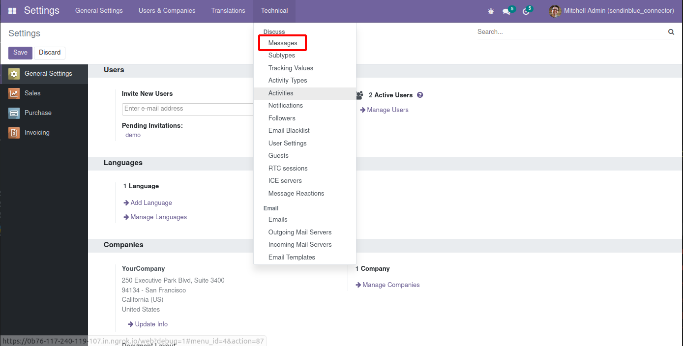Settings -->Technical -->Messages