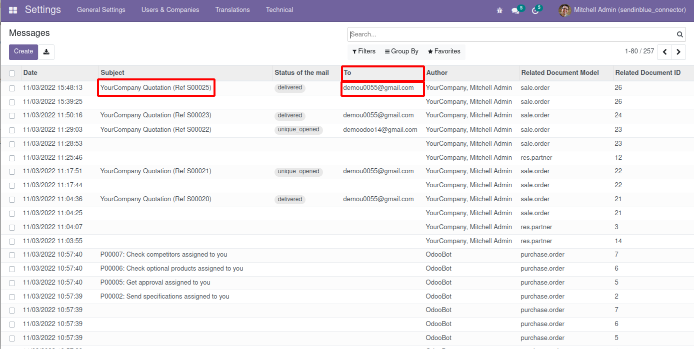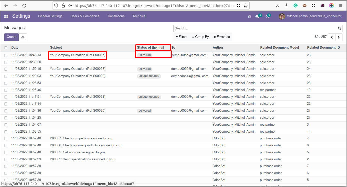 This odoo module allows you to know the status of mail that send from odoo to another mail by setup the outgoing mail server through Sendinblue.
